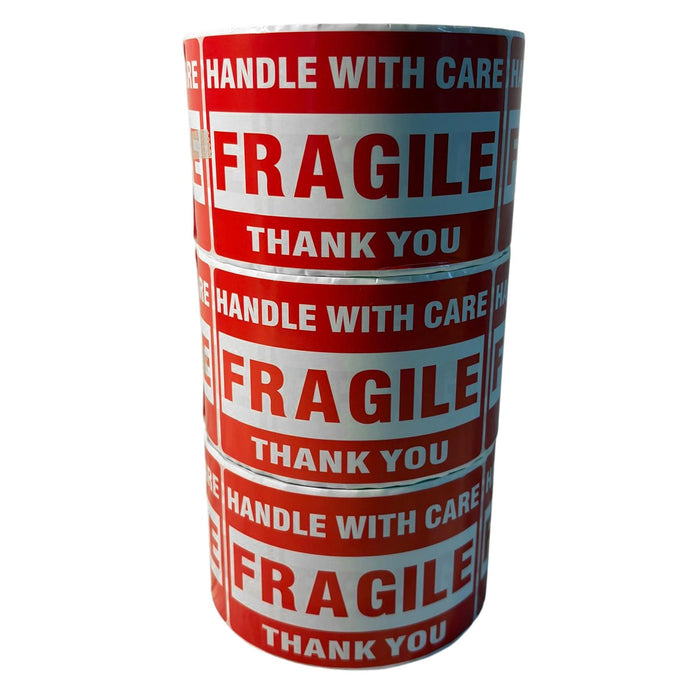 Three Rolls Premium Fragile Warning Stickers – Self-Adhesive “Fragile Handle with Care” Shipping Labels, 1000 Stickers per Roll, Bright Red & White, Waterproof & Tear-Resistant, for Boxes, Parcels & Packages