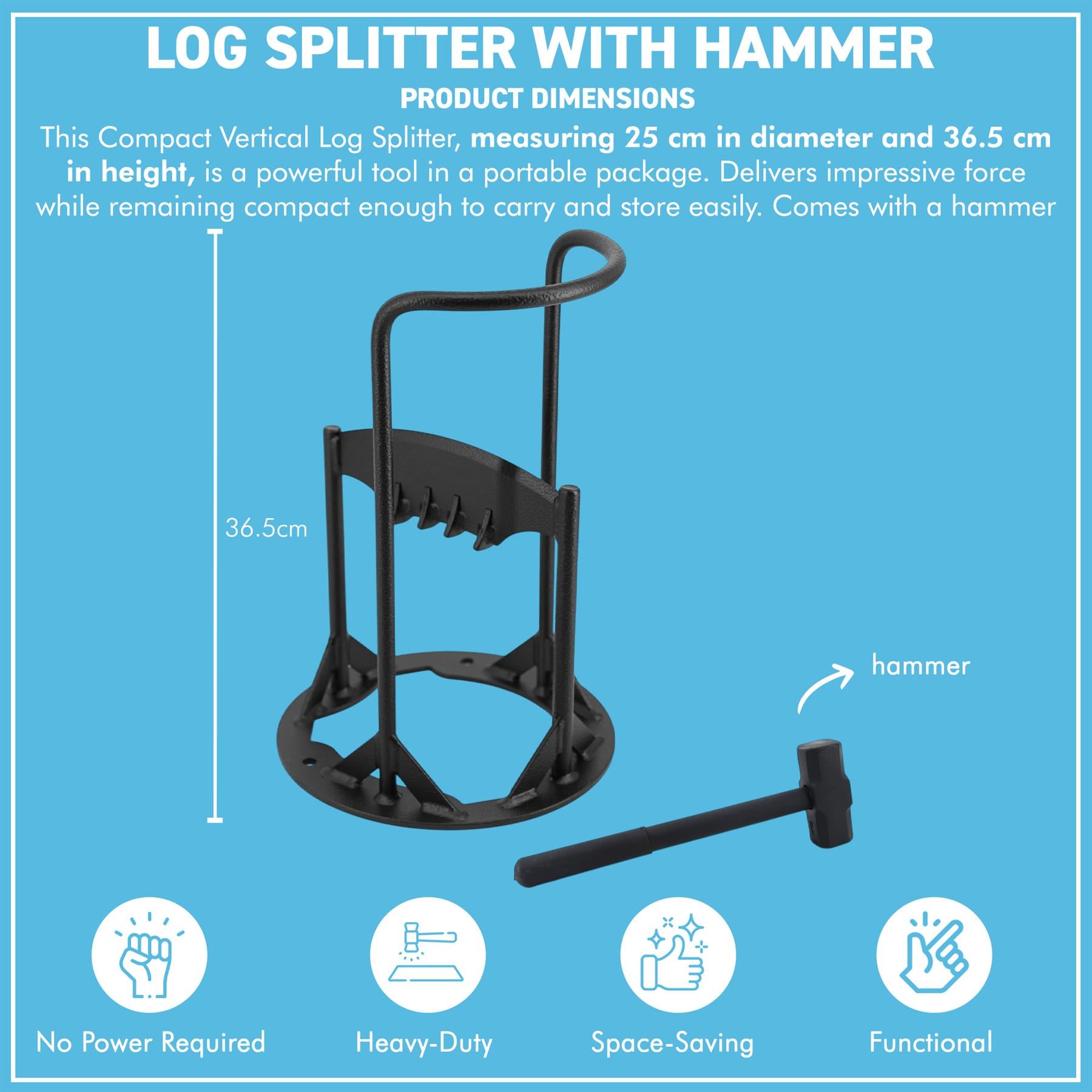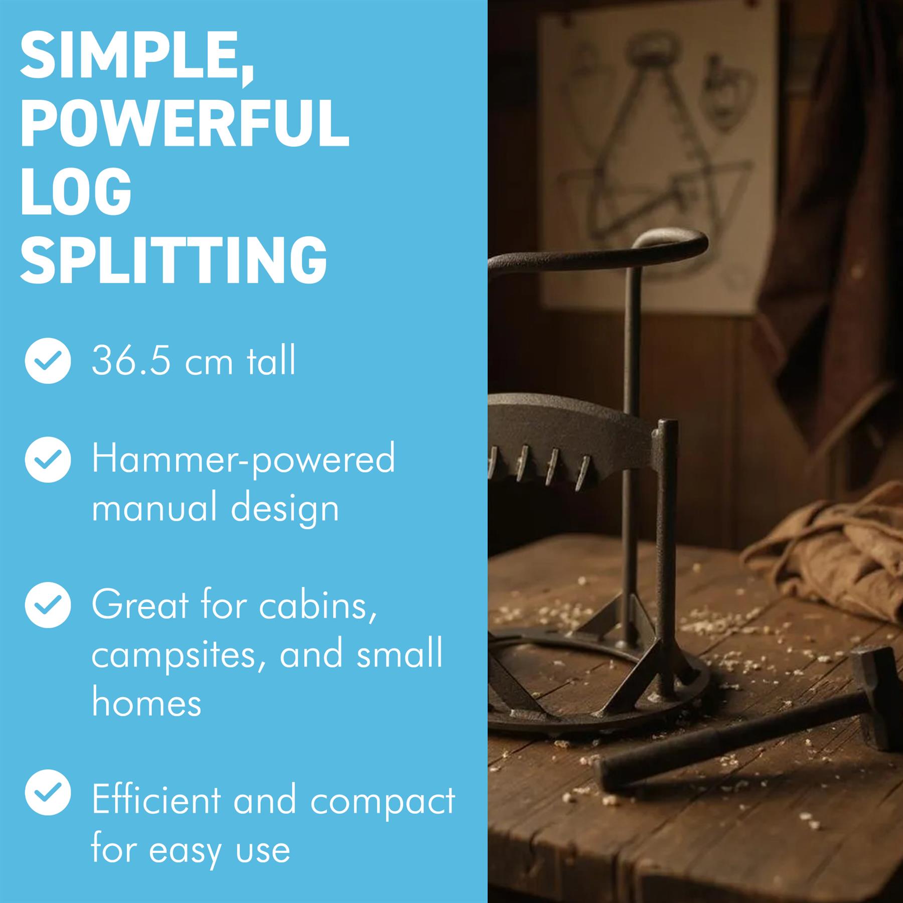 𝗖𝗢𝗠𝗣𝗔𝗖𝗧 𝗦𝗜𝗭𝗘: Measuring 𝟯𝟲.𝟱𝗰𝗺 (𝟭𝟰”) 𝗶𝗻 𝗵𝗲𝗶𝗴𝗵𝘁, this cast iron wood splitter is ideal for splitting logs, firewood, and kindling with minimal effort. The compact size ensures precise control and easy handling for home use.