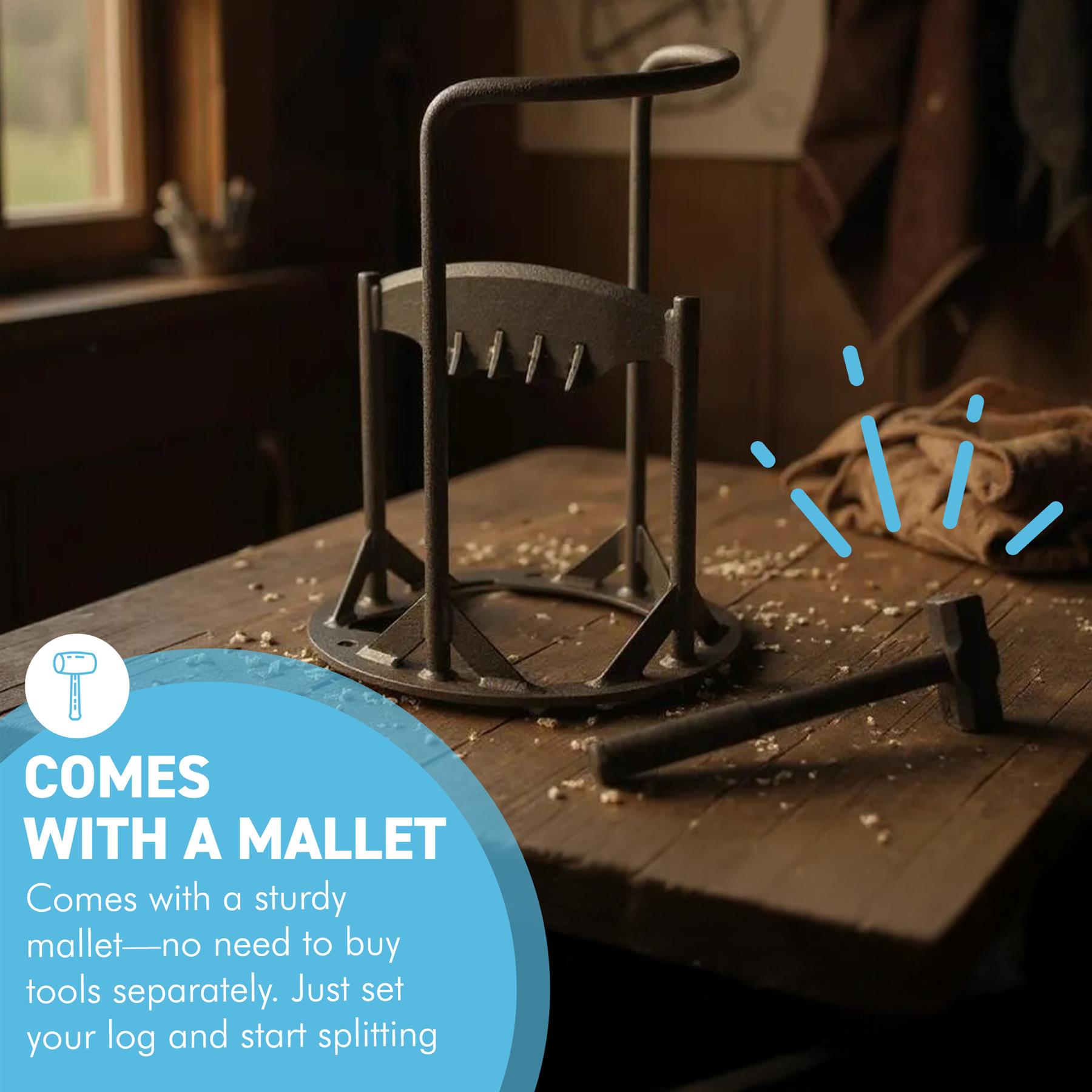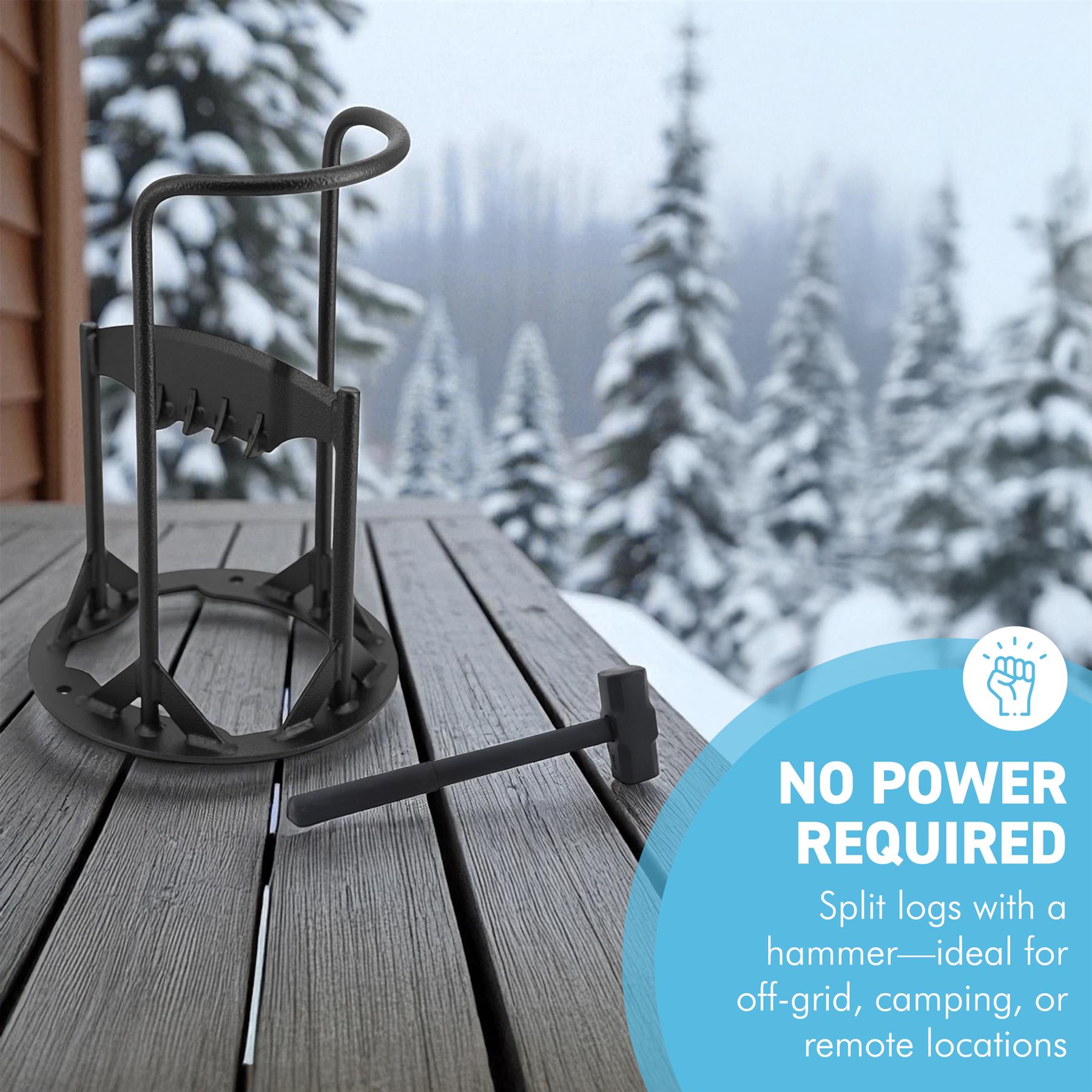 𝗖𝗔𝗦𝗧 𝗜𝗥𝗢𝗡 𝗖𝗢𝗡𝗦𝗧𝗥𝗨𝗖𝗧𝗜𝗢𝗡: Crafted from high-quality cast iron, this manual wood splitter is built to last. Its robust design withstands repeated use, providing a safe and long-lasting solution for splitting logs, kindling, and fine firewood. Includes HAMMER.