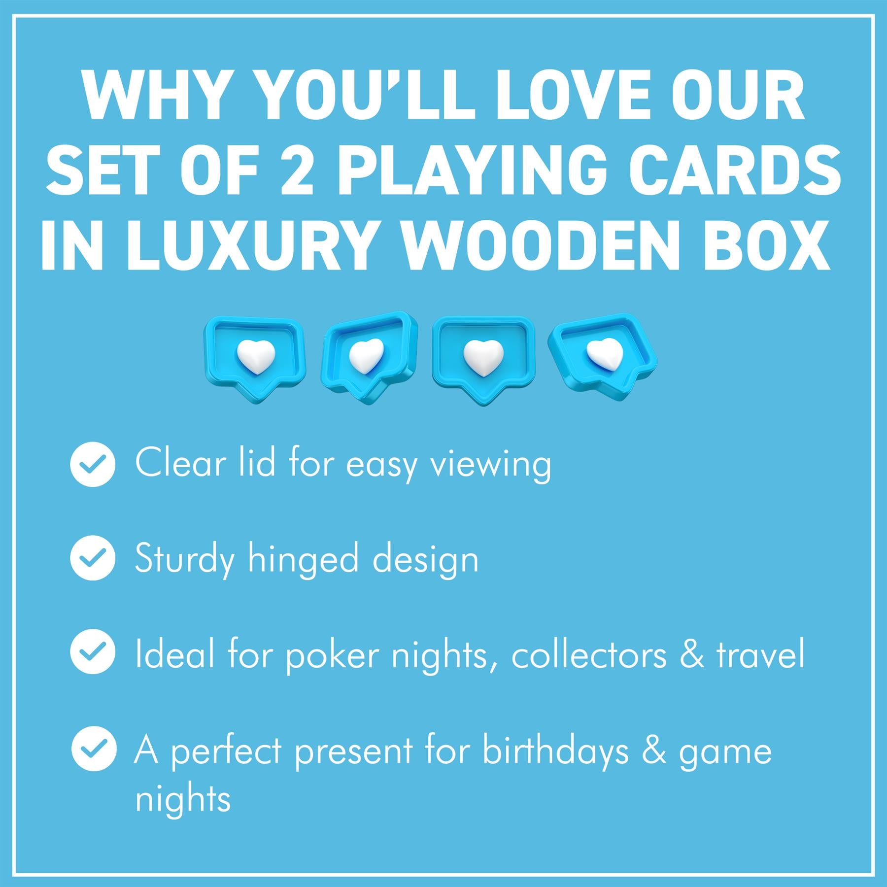 𝗜𝗗𝗘𝗔𝗟 𝗚𝗜𝗙𝗧 & 𝗩𝗘𝗥𝗦𝗔𝗧𝗜𝗟𝗘 𝗨𝗦𝗘: This wooden card box set makes a thoughtful gift for poker enthusiasts, card players, or collectors. Its premium design, brass detailing, and compact size make it perfect for game nights, travel, or home décor.