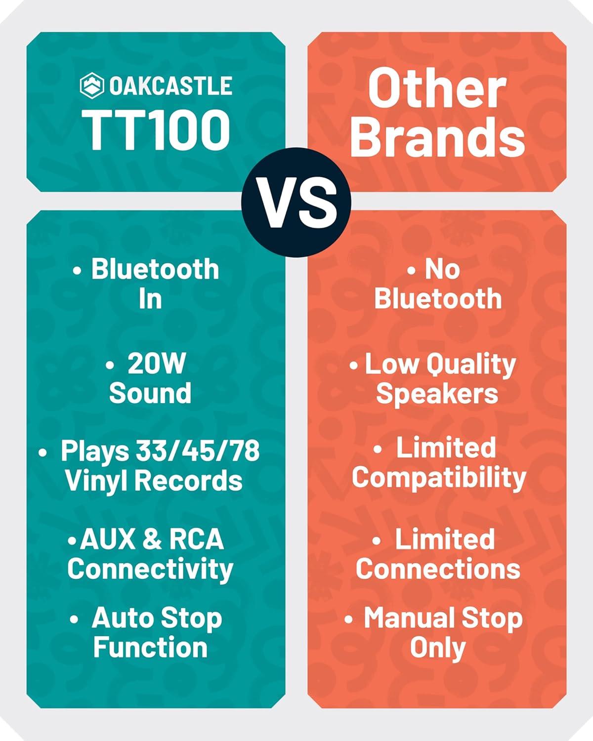 𝗪𝗛𝗔𝗧'𝗦 𝗜𝗡 𝗧𝗛𝗘 𝗕𝗢𝗫:This Package Includes Oakcastle TT100 Turntable, Power Adapter, 45 RPM Adapter, Slipmat & User-Friendly Manual. Product Dimensions: 32 x 30 x 13.1 cm, 2.25 kg.