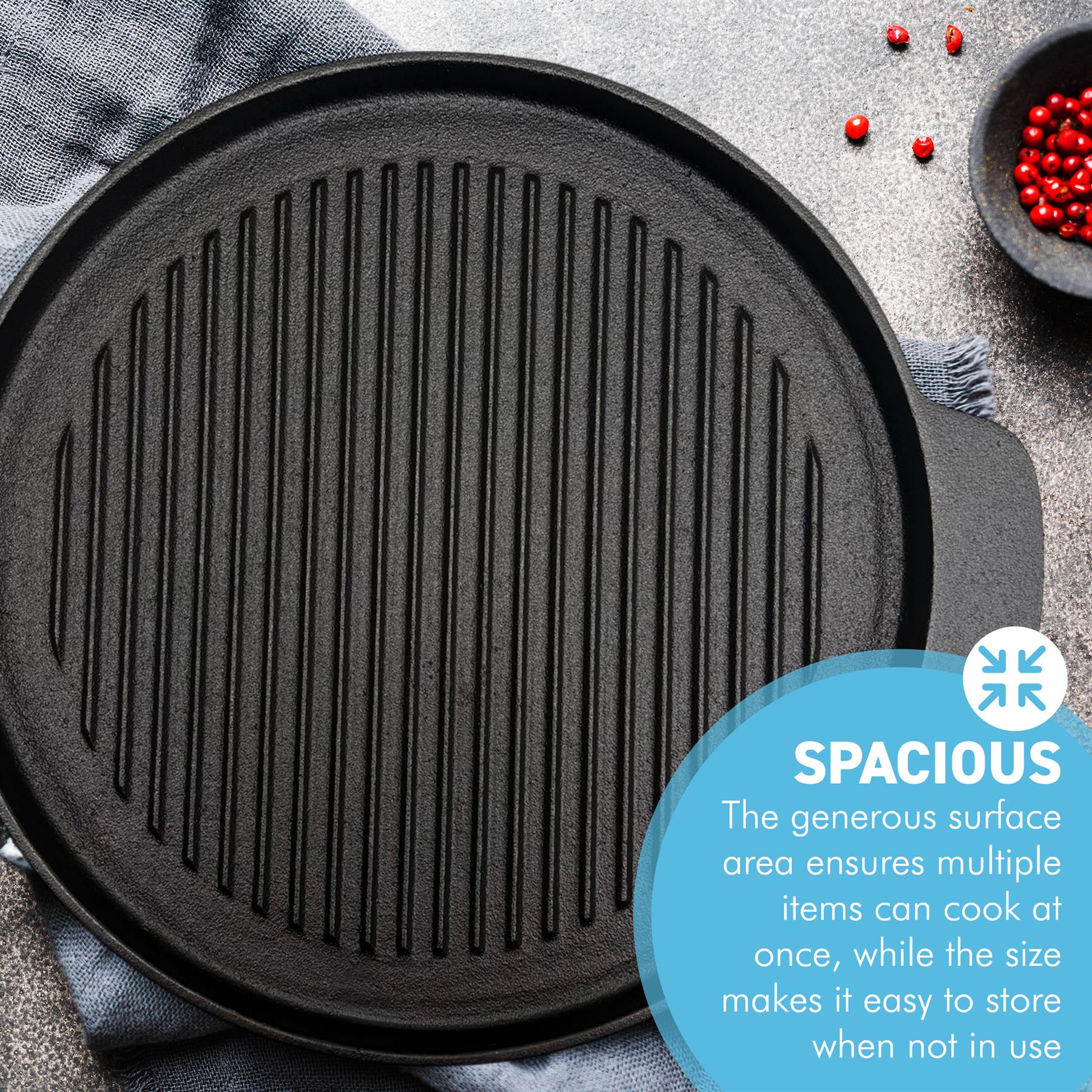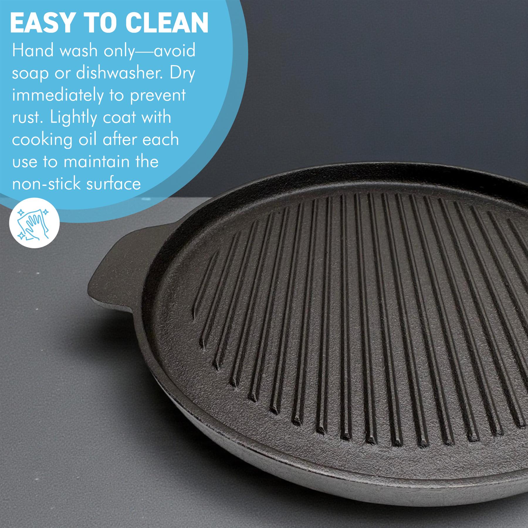 ๐๐จ๐๐ ๐๐๐ก๐๐๐๐ฆ ๐๐ข๐ฅ ๐๐๐ฆ๐ฌ ๐๐๐ก๐๐๐๐ก๐: Equipped with sturdy dual handles, this grill pan is simple and safe to lift, even when hot. Perfect for moving from stovetop to oven or outdoor grills, the handles provide secure control. Heavy-duty cast iron ensures long-lasting performance, while the non-stick surface reduces the need for added oils, promoting healthier, hassle-free cooking.