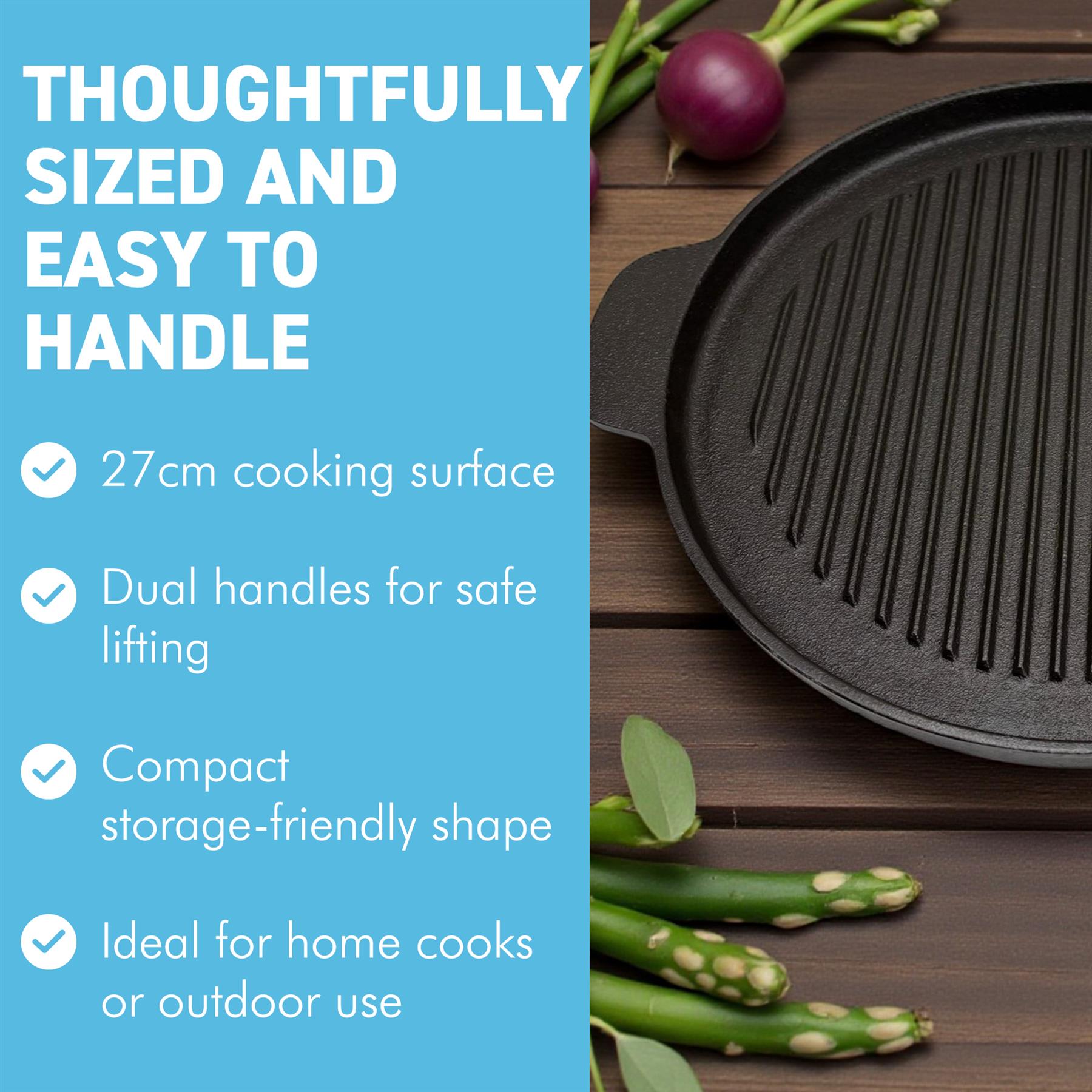 ๐ฃ๐ฅ๐๐ ๐๐จ๐ ๐๐๐ฆ๐ง ๐๐ฅ๐ข๐ก ๐๐ข๐ก๐ฆ๐ง๐ฅ๐จ๐๐ง๐๐ข๐ก: Crafted from heavy-duty cast iron, this 27cm grill pan provides exceptional durability and even heat for consistent cooking. The non-stick surface allows food to cook evenly and release easily. Suitable for indoor or outdoor use, it performs reliably on all stovetops, including gas, electric, and induction, making it a versatile addition to any kitchen.