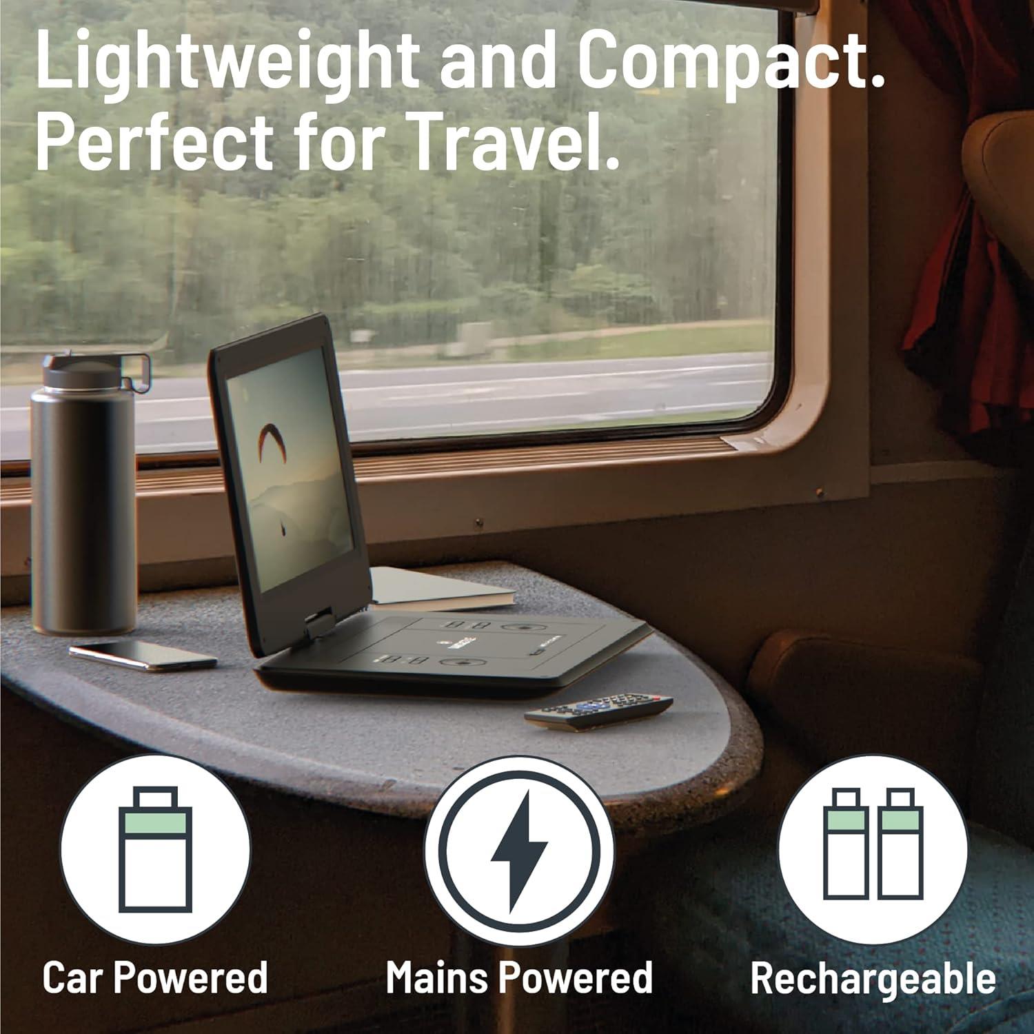 ๐๐จ๐๐๐ง-๐๐ก ๐๐๐ง๐ง๐๐ฅ๐ฌ: The DVD175 redefines car entertainment with its integrated battery, a 4,000mah battery grants up to 6 hours of playtime. Stay charged on long trips with the AC mains and car adapter. Enjoy HD movies indoors or amidst nature in your tent, car or caravan.