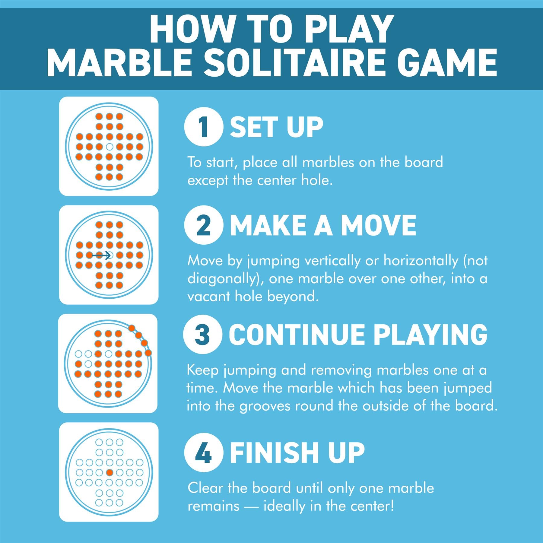Equally entertaining for a casual player and anybody who wants to learn the advanced intricacies of the game, an engaging and challenging game come up with effective strategies to clear your puzzle board and win the game. Remove as many marbles as you can by jumping one piece over another.