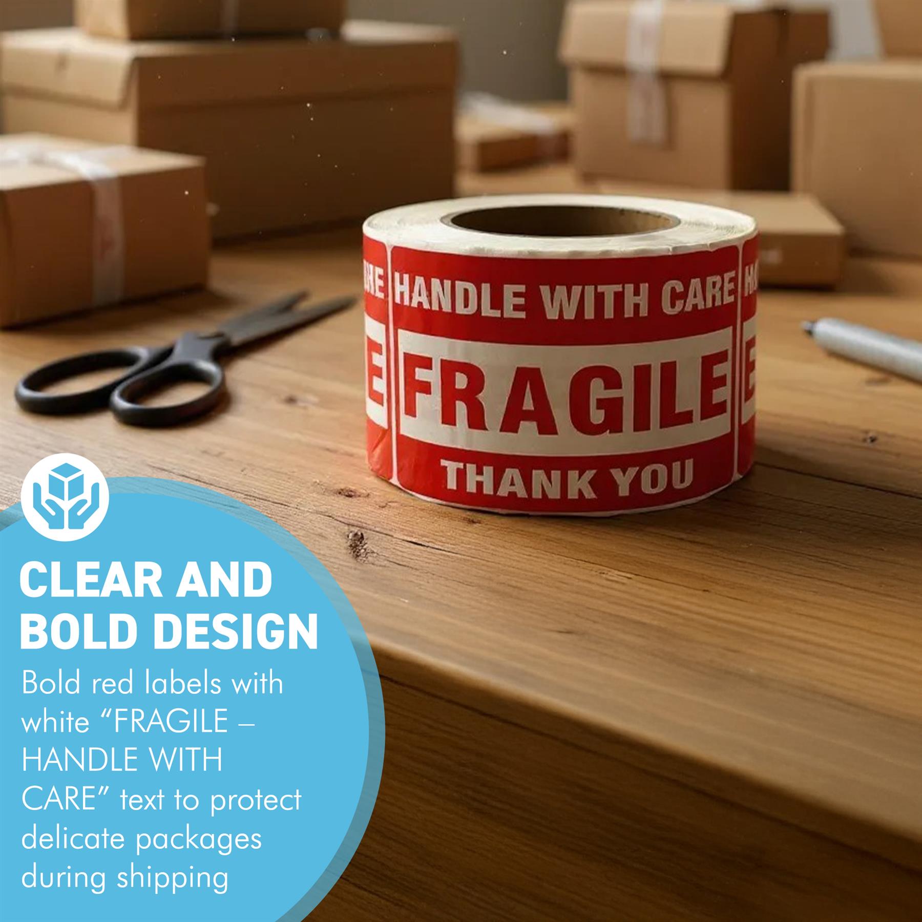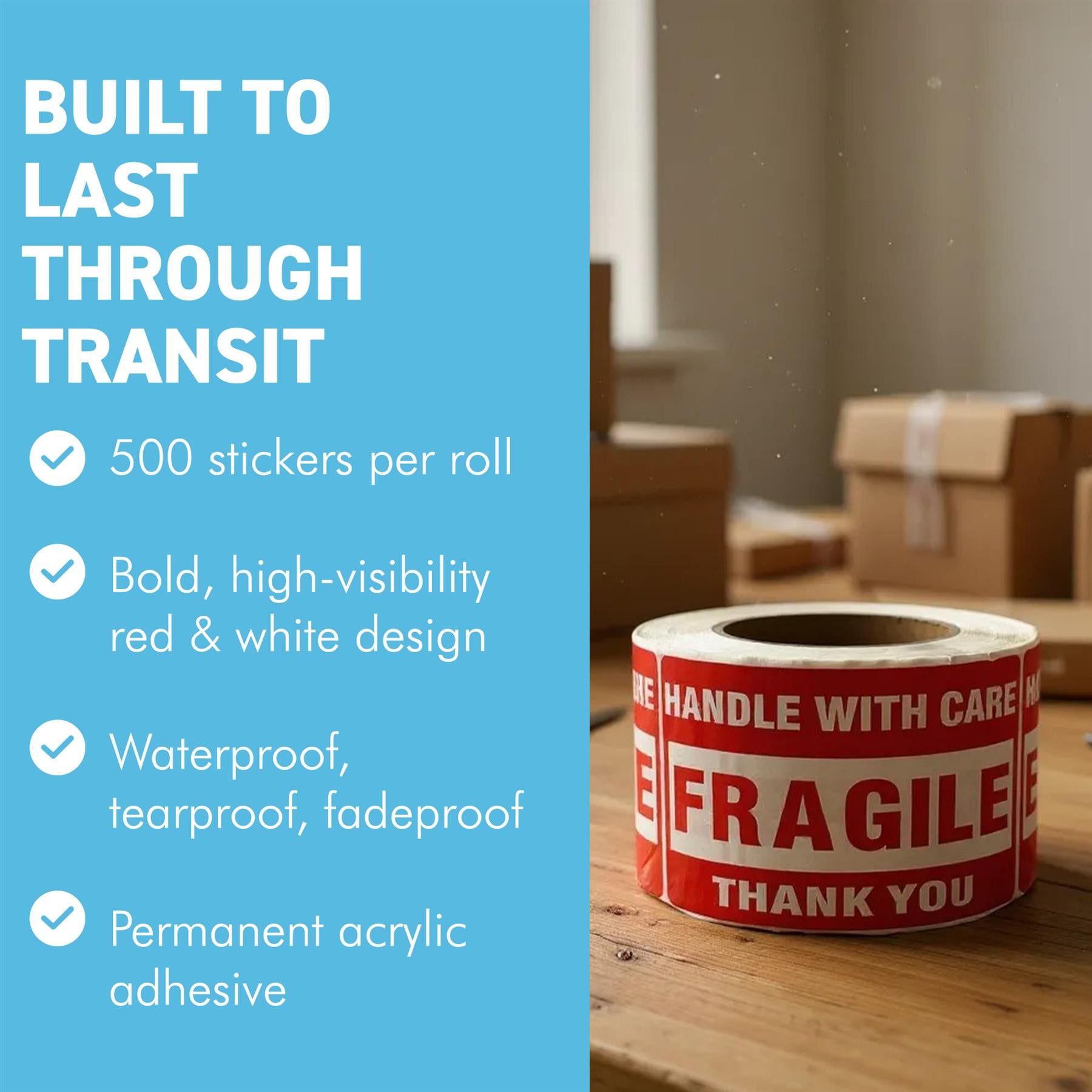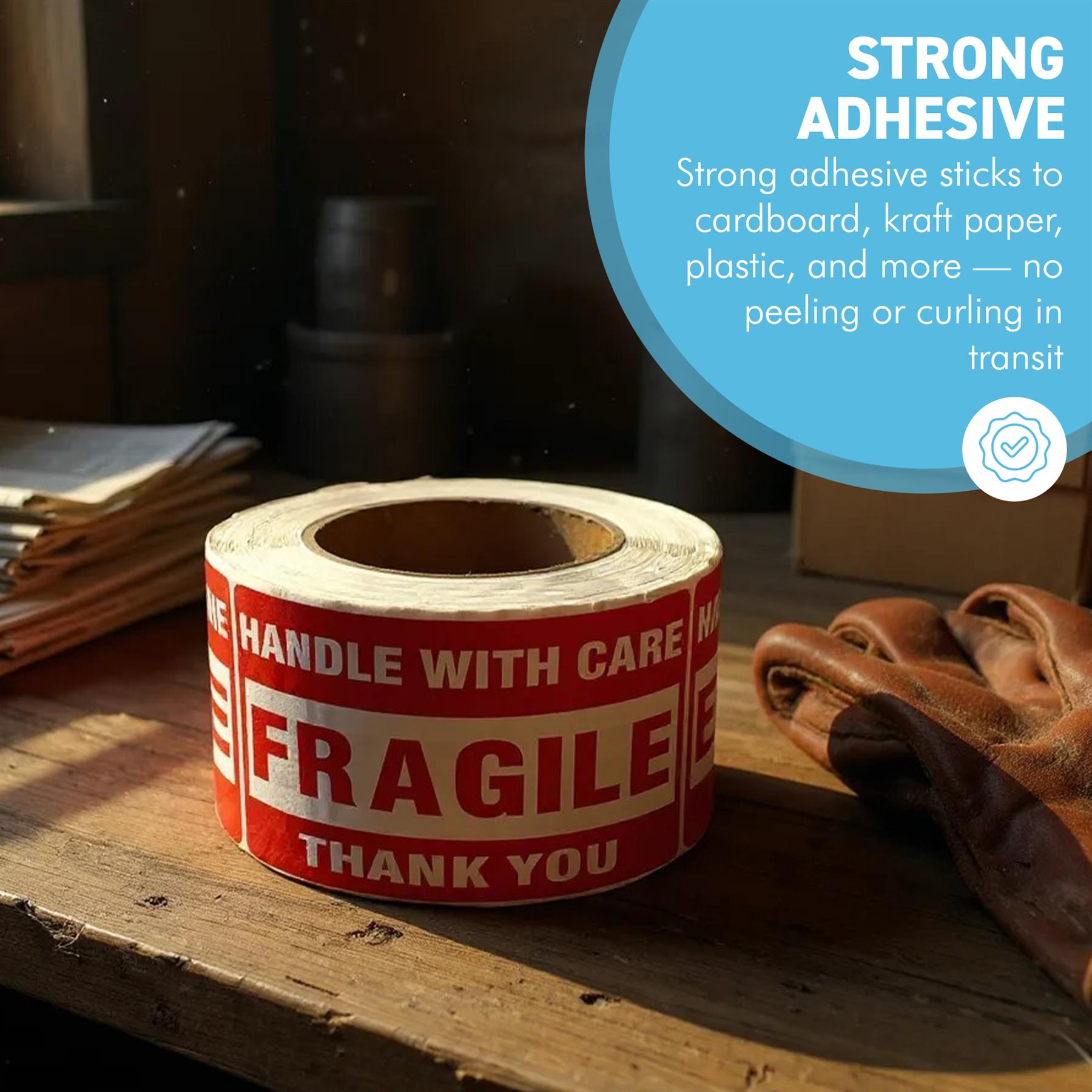 High-Visibility & Bold Design Bright white text on a Red background with the clear message FRAGILE HANDLE WITH CARE. Designed to grab attention instantly and reduce shipping damage.