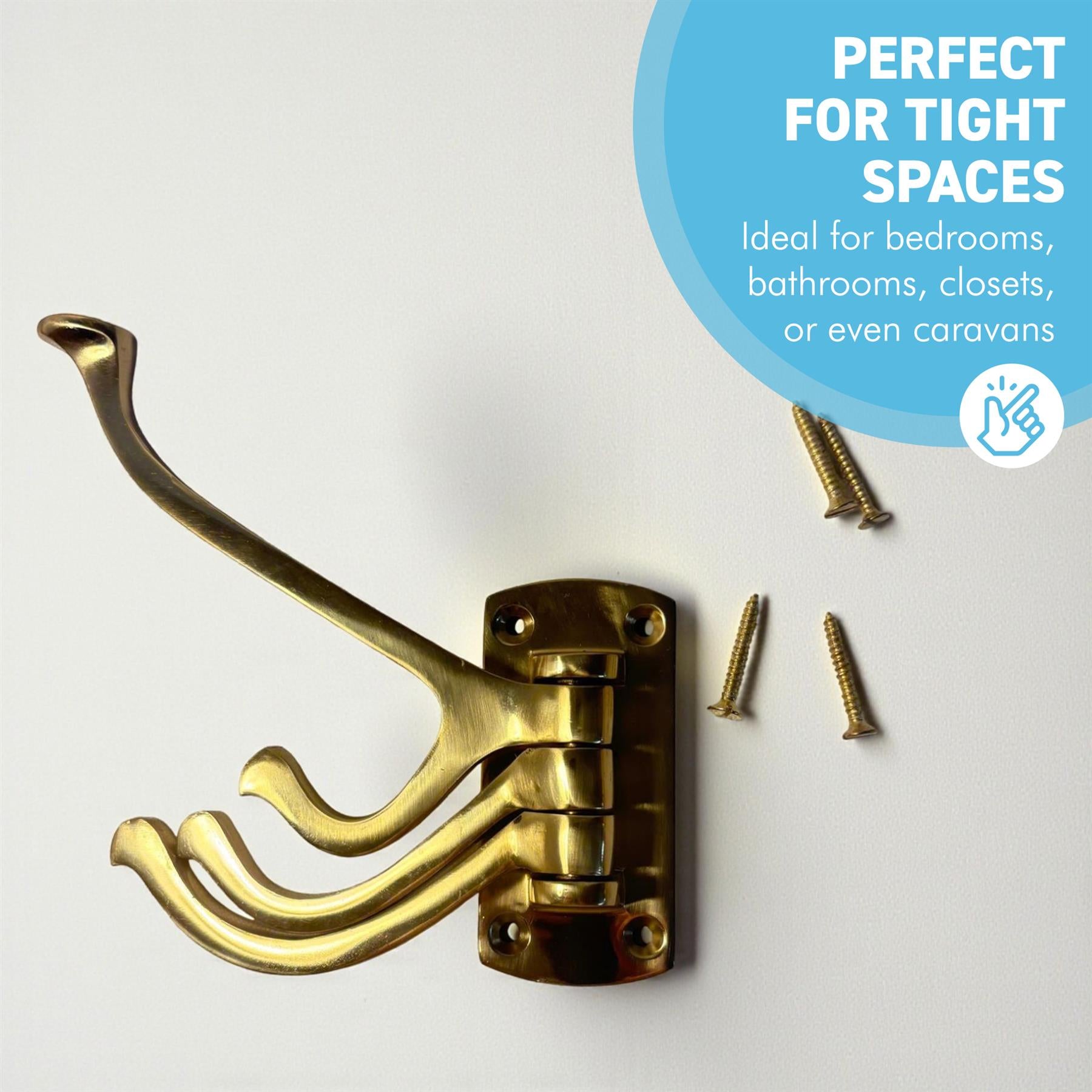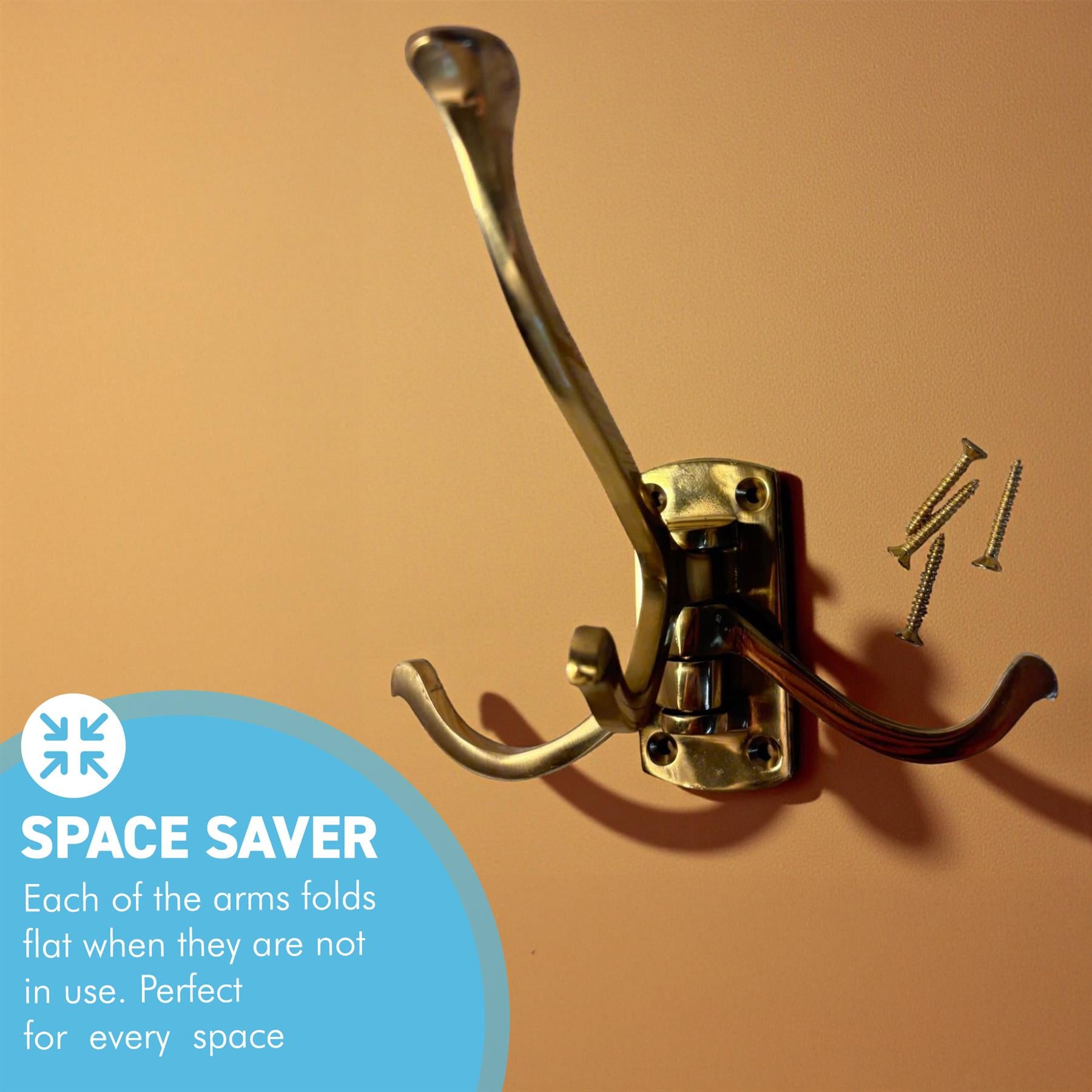 𝗦𝗣𝗔𝗖𝗘-𝗦𝗔𝗩𝗜𝗡𝗚 𝗦𝗪𝗜𝗩𝗘𝗟 𝗗𝗘𝗦𝗜𝗚𝗡 : Ideal for compact rooms, this folding hook features independently moving arms that tuck neatly away when not in use. It provides reliable hanging storage without adding clutter, perfect for hallways, bathrooms, bedrooms or utility spaces.