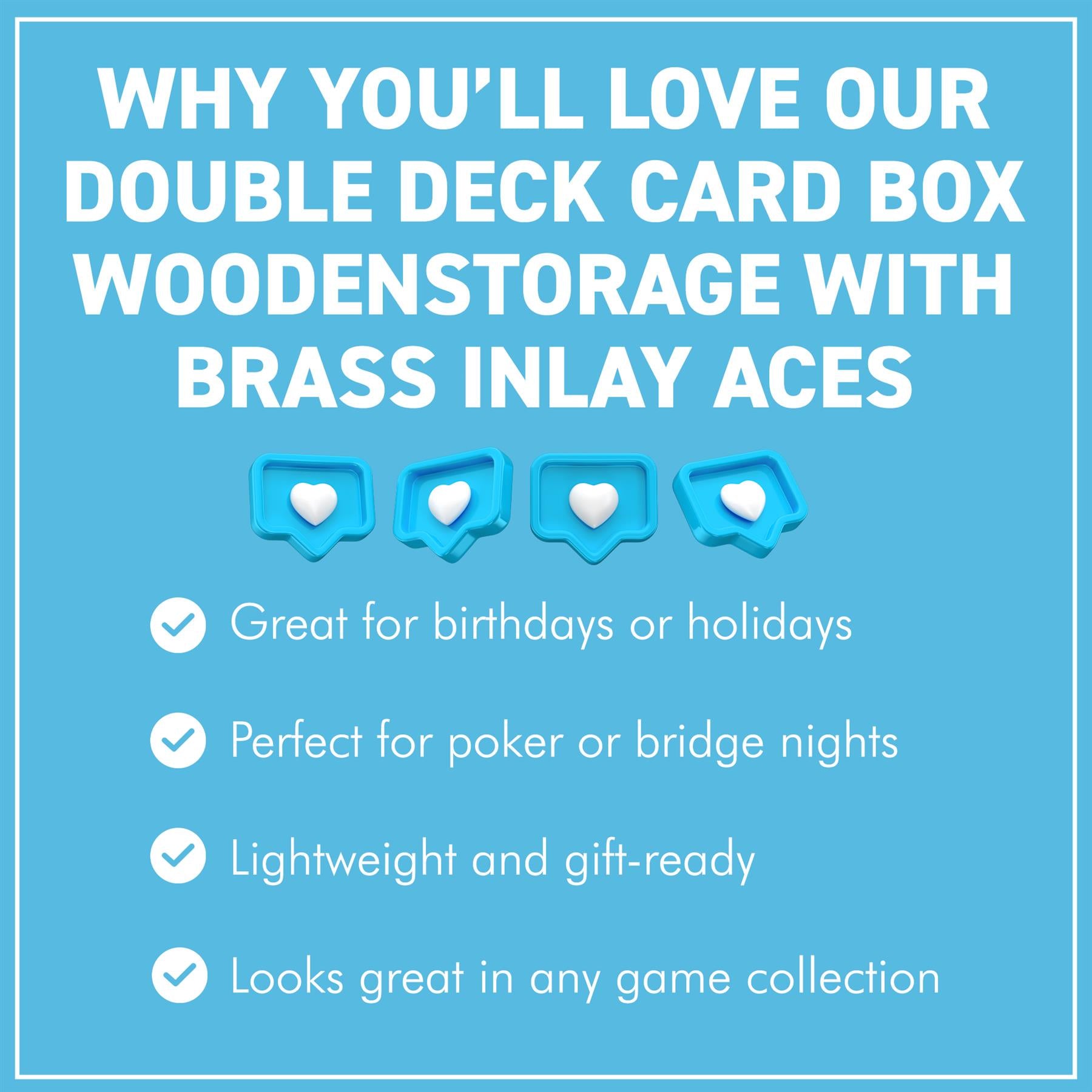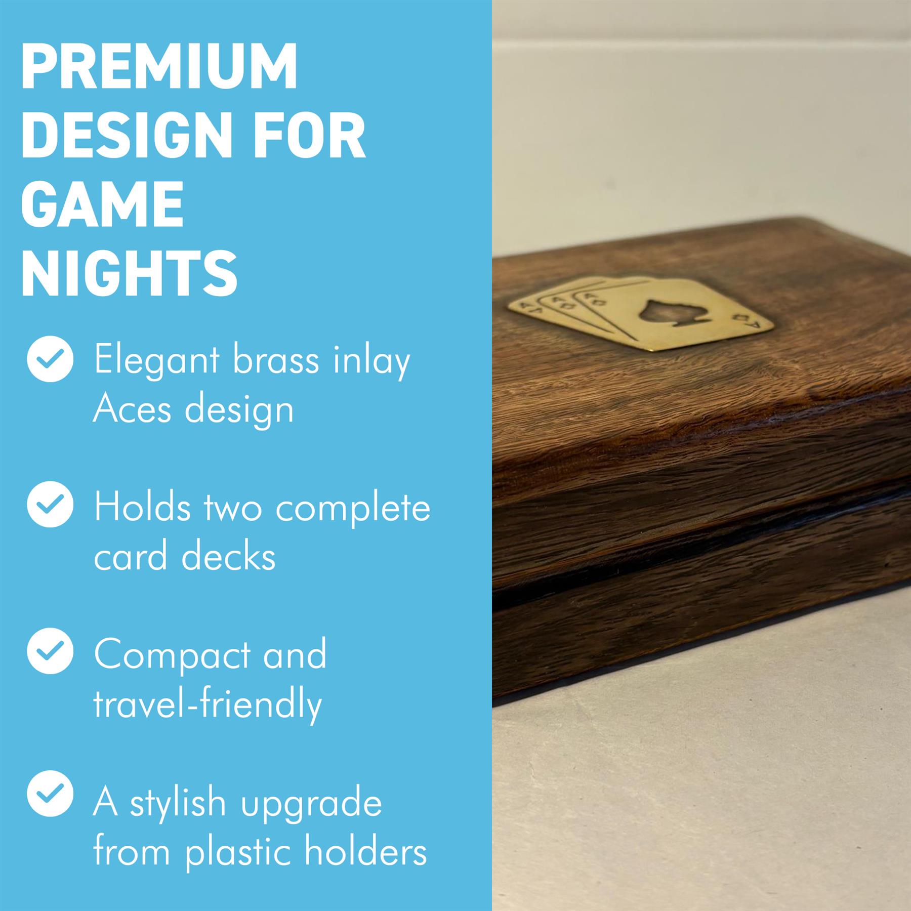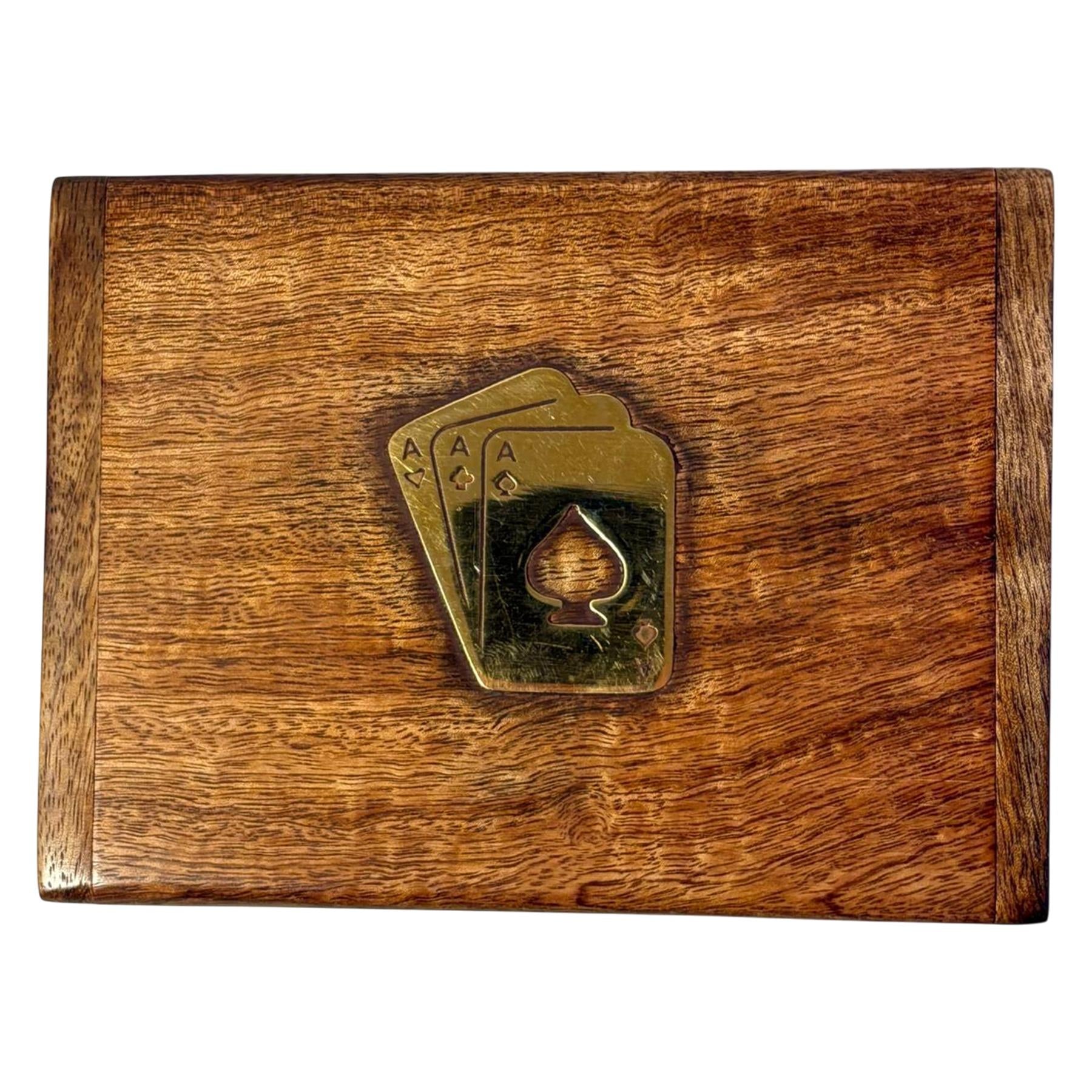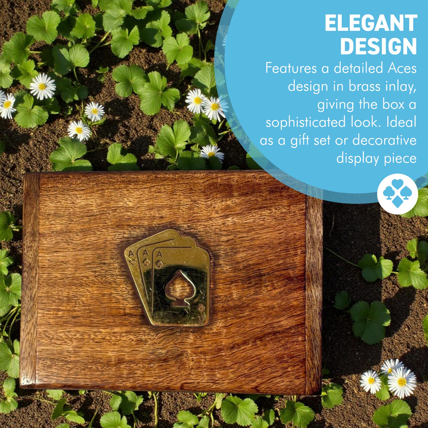 𝗘𝗟𝗘𝗚𝗔𝗡𝗧 𝗕𝗥𝗔𝗦𝗦 𝗜𝗡𝗟𝗔𝗬 𝗔𝗖𝗘𝗦 𝗟𝗜𝗗: Features a detailed Aces design in brass inlay, giving the box a sophisticated look. Ideal as a gift set or decorative display piece.