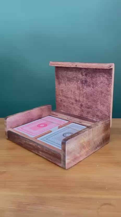 𝗗𝗨𝗥𝗔𝗕𝗟𝗘 𝗛𝗔𝗡𝗗𝗠𝗔𝗗𝗘 𝗪𝗢𝗢𝗗𝗘𝗡 𝗖𝗢𝗡𝗦𝗧𝗥𝗨𝗖𝗧𝗜𝗢𝗡: Crafted from high-quality wood, this card holder with hinged lid provides secure, long-lasting storage for two full decks of playing cards.