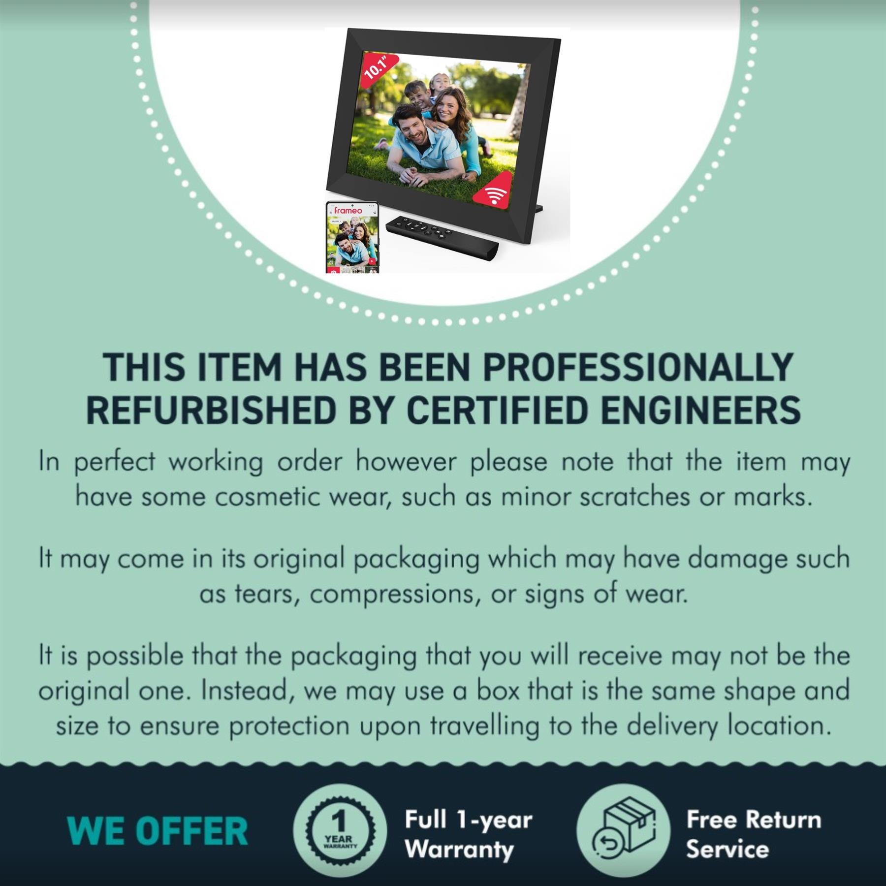 𝗘𝗔𝗦𝗬 𝗧𝗢 𝗨𝗦𝗘 & 𝗛𝗜𝗚𝗛 𝗤𝗨𝗔𝗟𝗜𝗧𝗬 𝗗𝗜𝗦𝗣𝗟𝗔𝗬 : Enjoy crystal-clear image quality with the 10.1" LCD touchscreen, ensuring every photo is vibrant and sharp. Navigation is simple and intuitive via the Frameo app, allowing instant photo uploads from anywhere. This digital frame makes sharing heartfelt moments effortless and makes a thoughtful gift for the whole family.