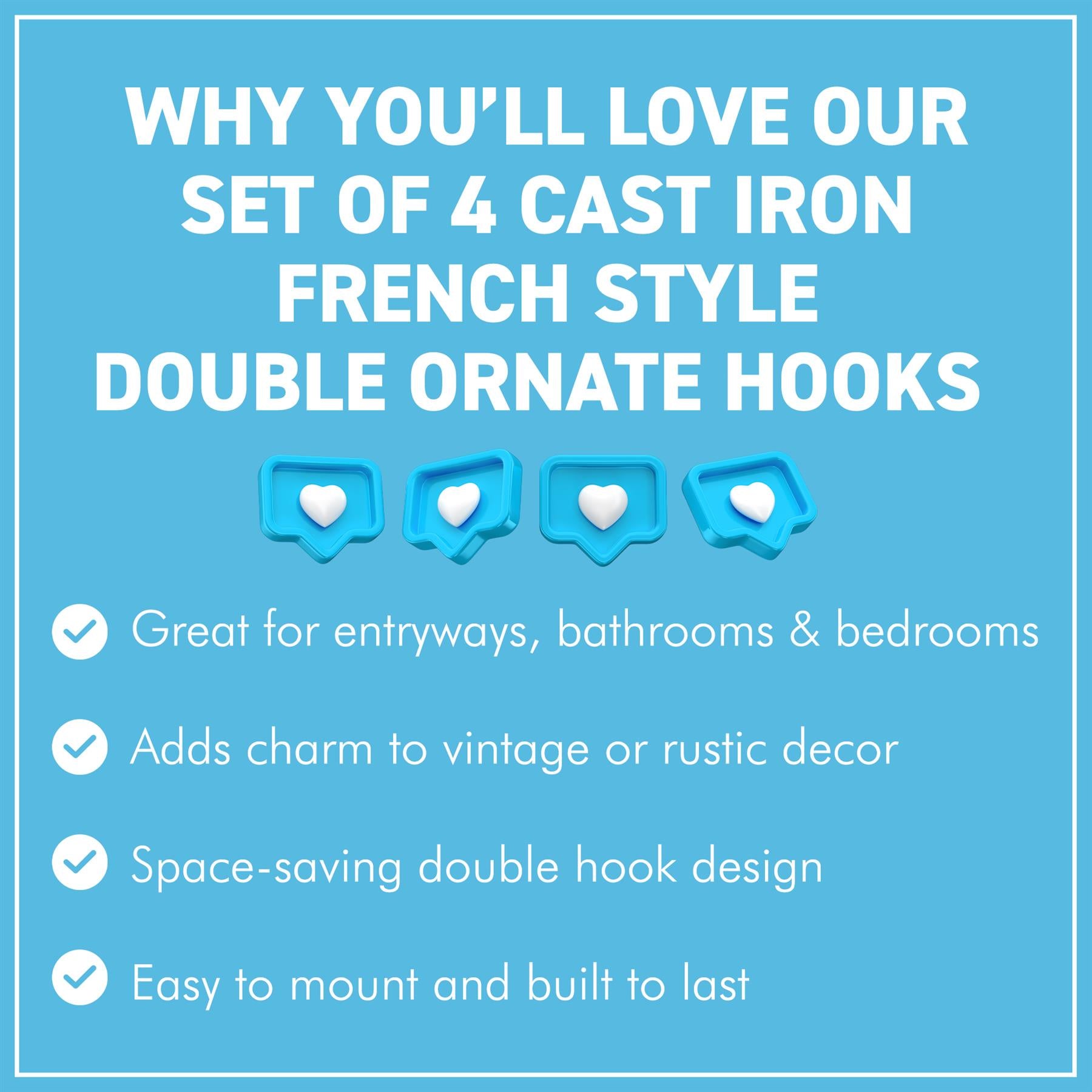 𝗩𝗜𝗡𝗧𝗔𝗚𝗘 𝗙𝗥𝗘𝗡𝗖𝗛 𝗗𝗘𝗦𝗜𝗚𝗡 : Enhance your home decor with these shabby chic French-style double hooks. Crafted from durable cast iron, their ornate design adds timeless elegance to any hallway, bedroom, cloakroom, or bathroom. The duck egg blue ceramic ball tops provide a charming pop of colour, making them a decorative feature as well as a functional storage solution.