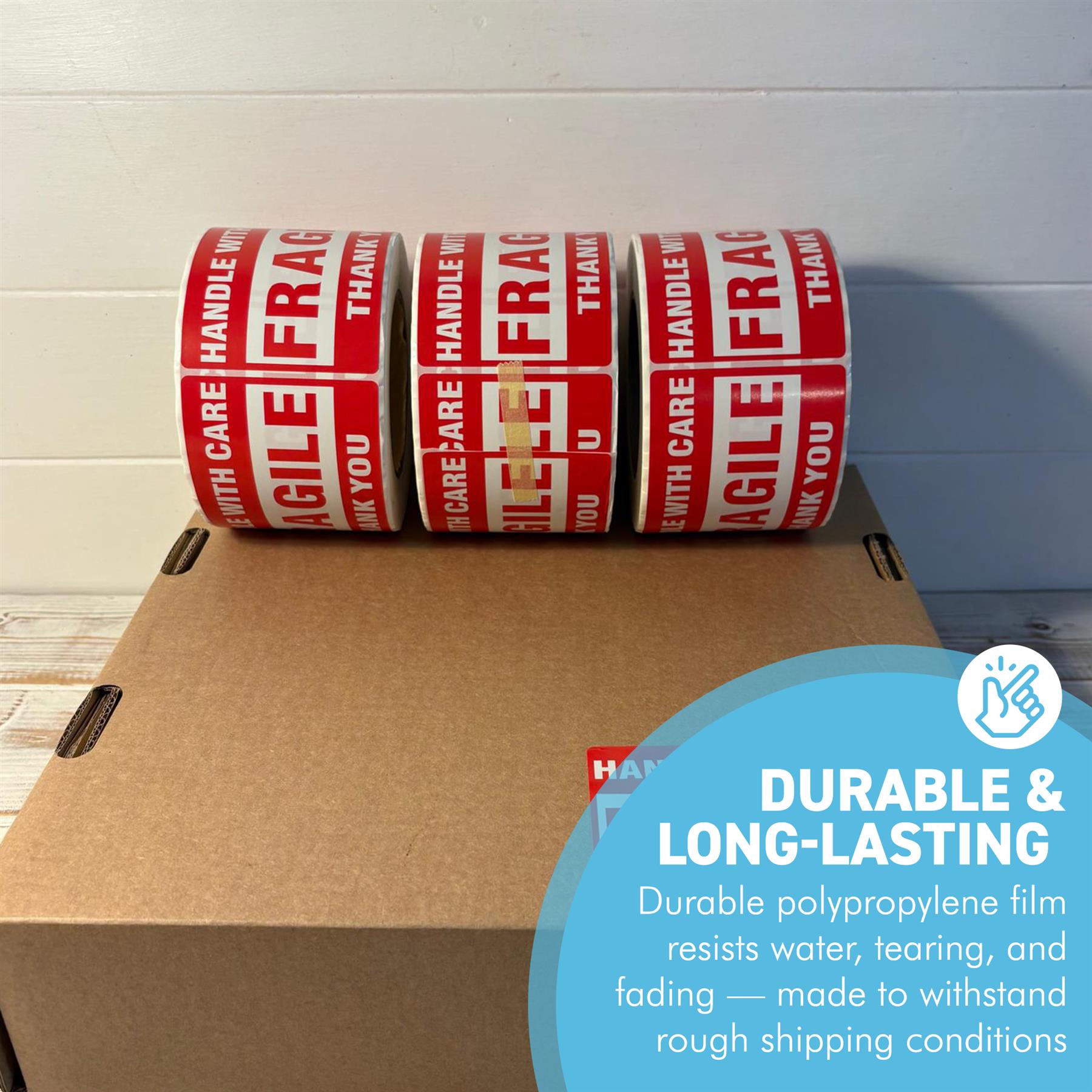 High-Visibility & Bold Design Bright white text on a Red background with the clear message FRAGILE HANDLE WITH CARE. Designed to grab attention instantly and reduce shipping damage.