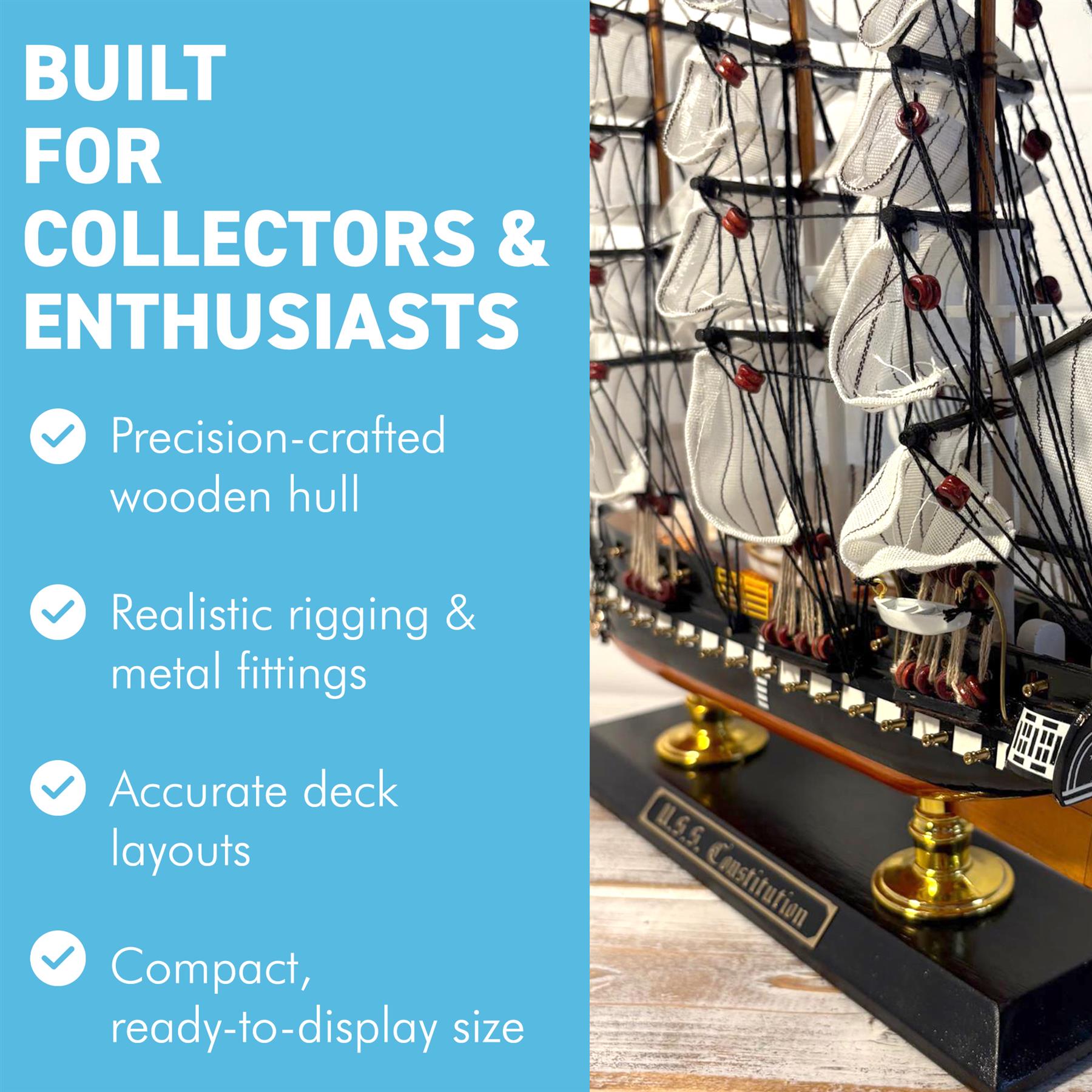 Premium Handcrafted Quality Made from real wood with hand-stitched cloth sails, brass fittings, and precision rigging for an authentic maritime look.