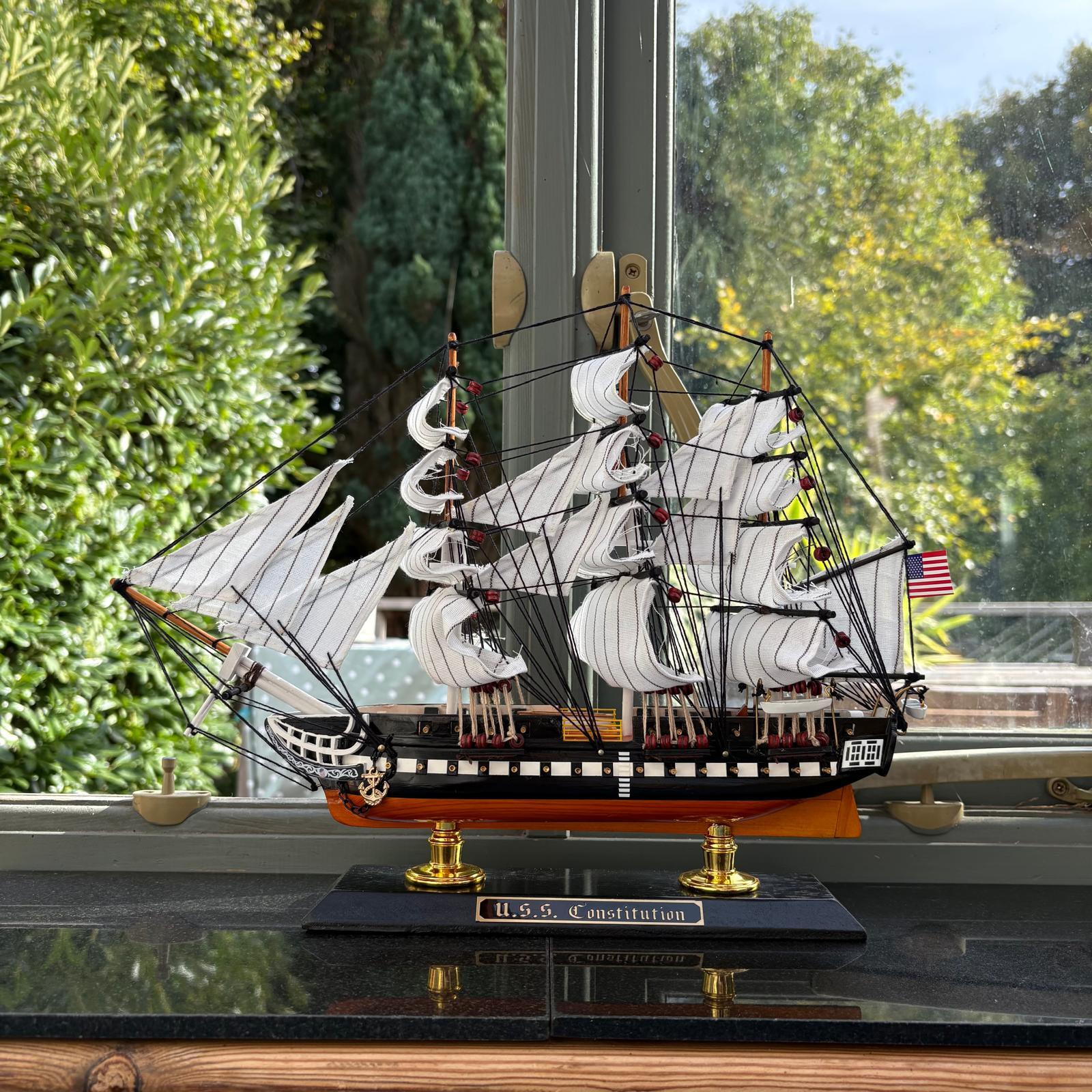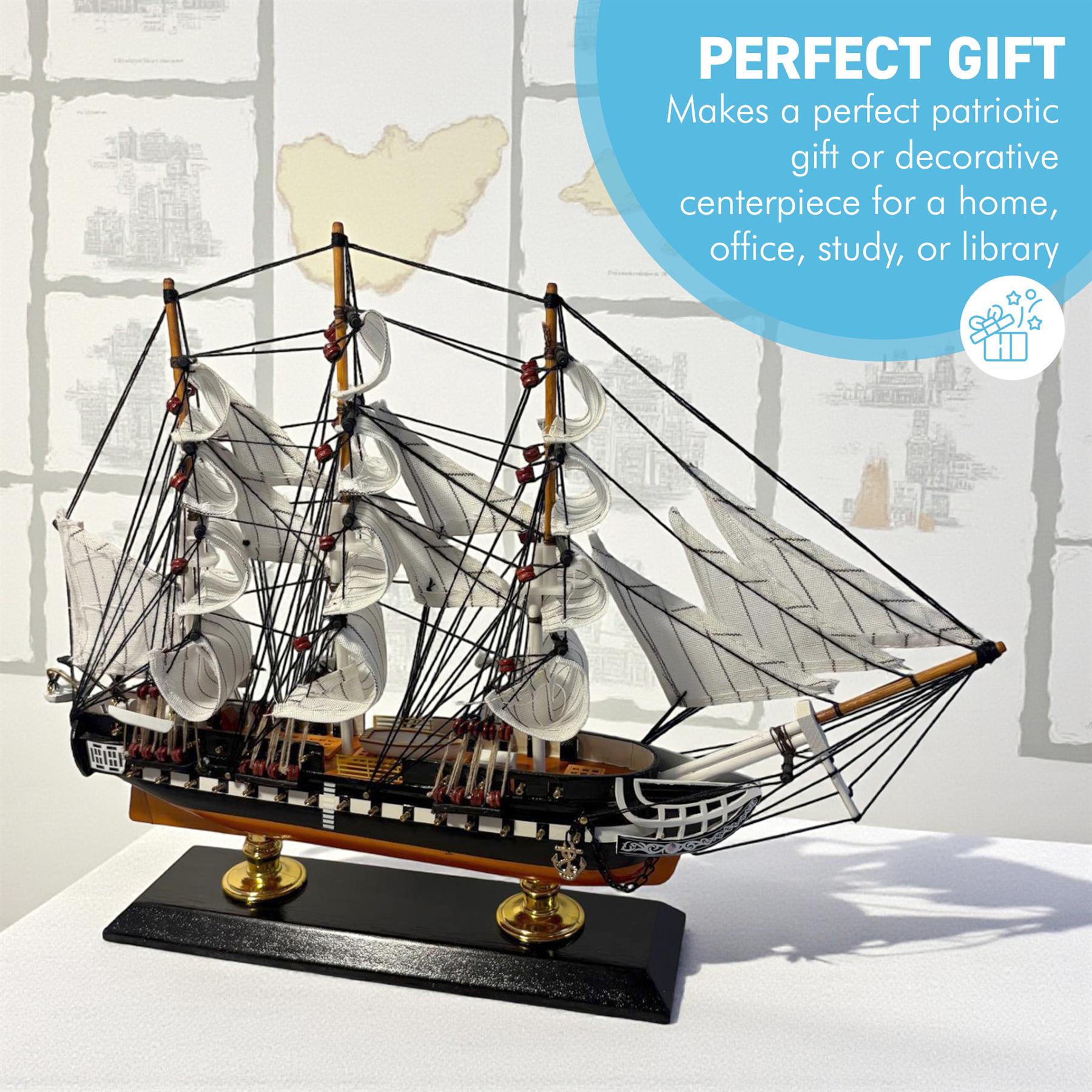 Authentic Historical Replica Detailed scale model of the legendary USS Constitution, Americas oldest commissioned warship, nicknamed Old Ironsides for her heroic service in the War of 1812.