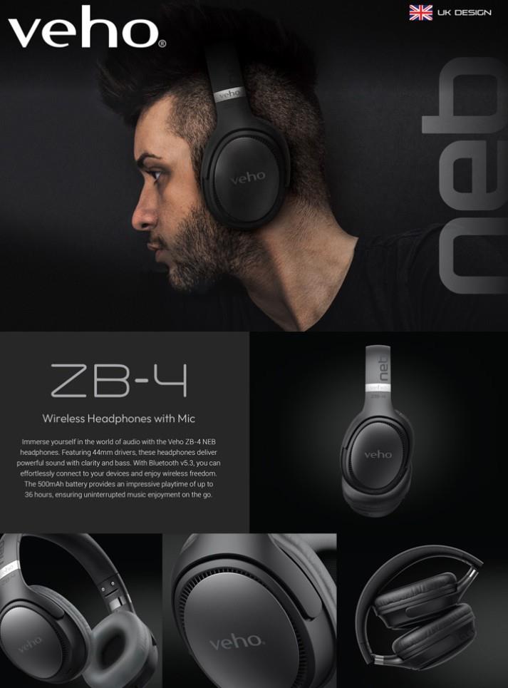 𝗣𝗢𝗪𝗘𝗥𝗙𝗨𝗟 𝗔𝗡𝗗 𝗜𝗠𝗠𝗘𝗥𝗦𝗜𝗩𝗘 𝗦𝗢𝗨𝗡𝗗 𝗘𝗫𝗣𝗘𝗥𝗜𝗘𝗡𝗖𝗘 : The Veho ZB-4 headphones feature large 44mm drivers, delivering high-quality audio with deep bass and crisp highs. Whether you're listening to music, watching movies, or your favourite content creator, these headphones provide an immersive sound experience that enhances your enjoyment.