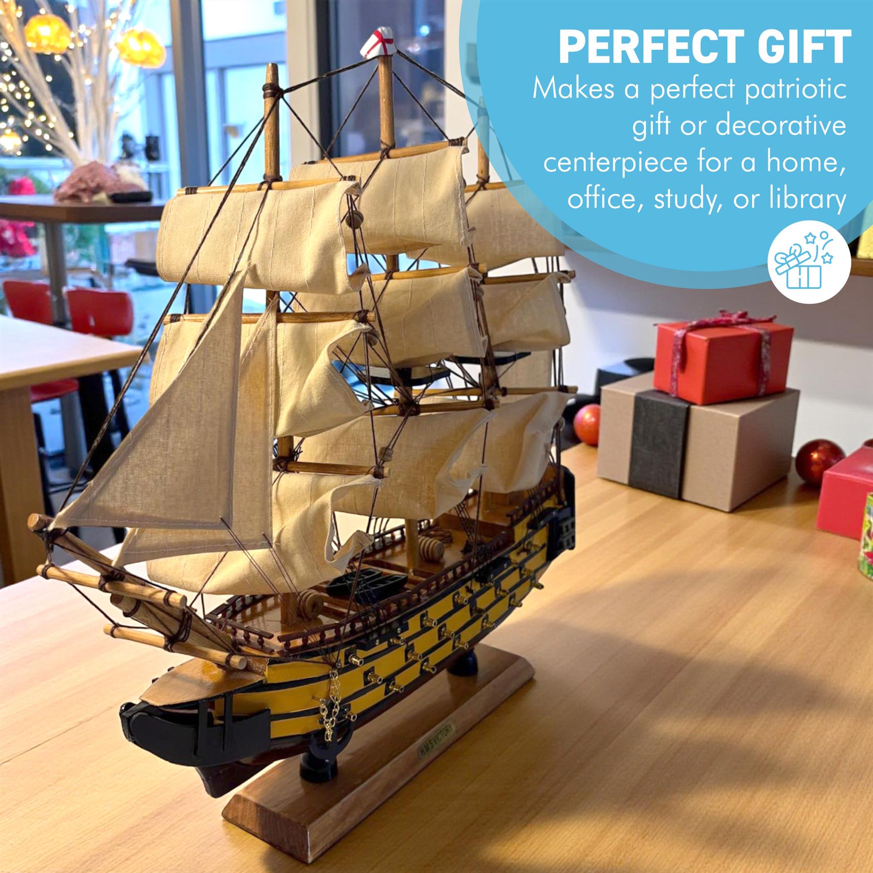 Wooden HMS Victory detailed model | Sailing gift | Wooden ships | Model battle ships | Sturdy construction | Cotton sails and rigging | 42cm (L) x 41cm (H)