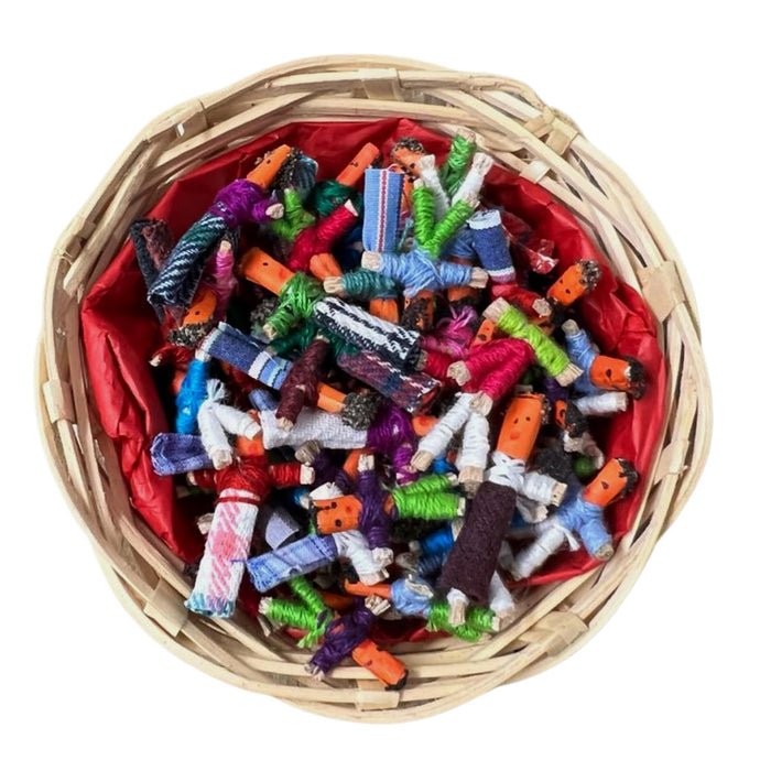 Basket of 72 Guatemalan handmade Mini Worry Dolls