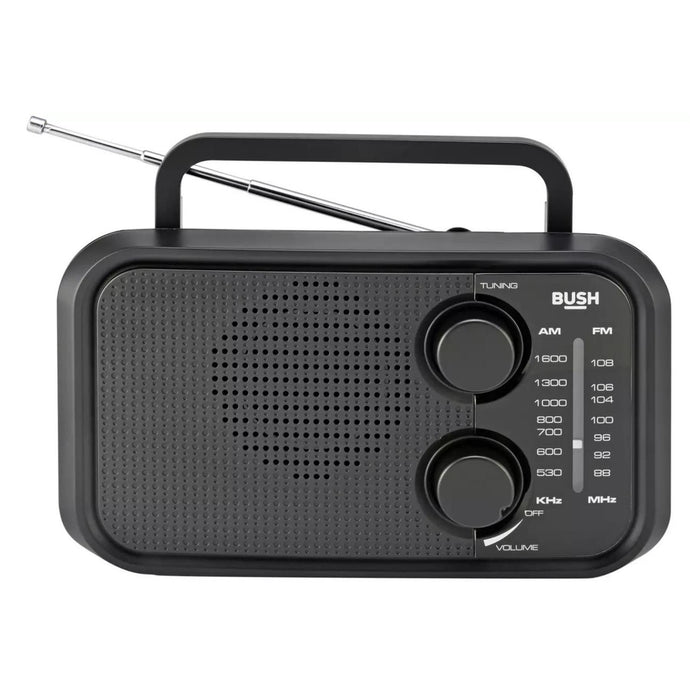 Bush Black Portable FM/AM Radio | Headphone Jack | Telescopic antenna