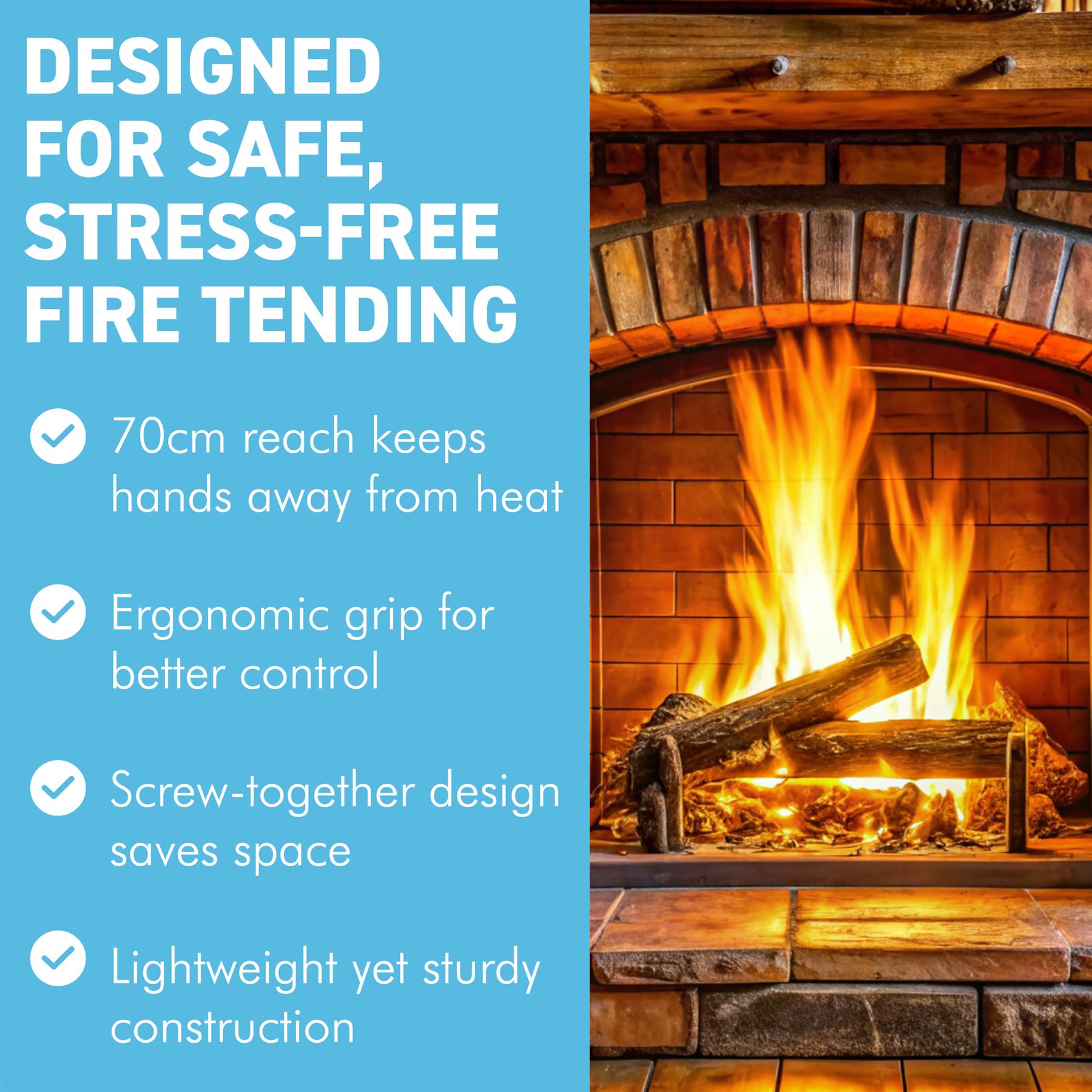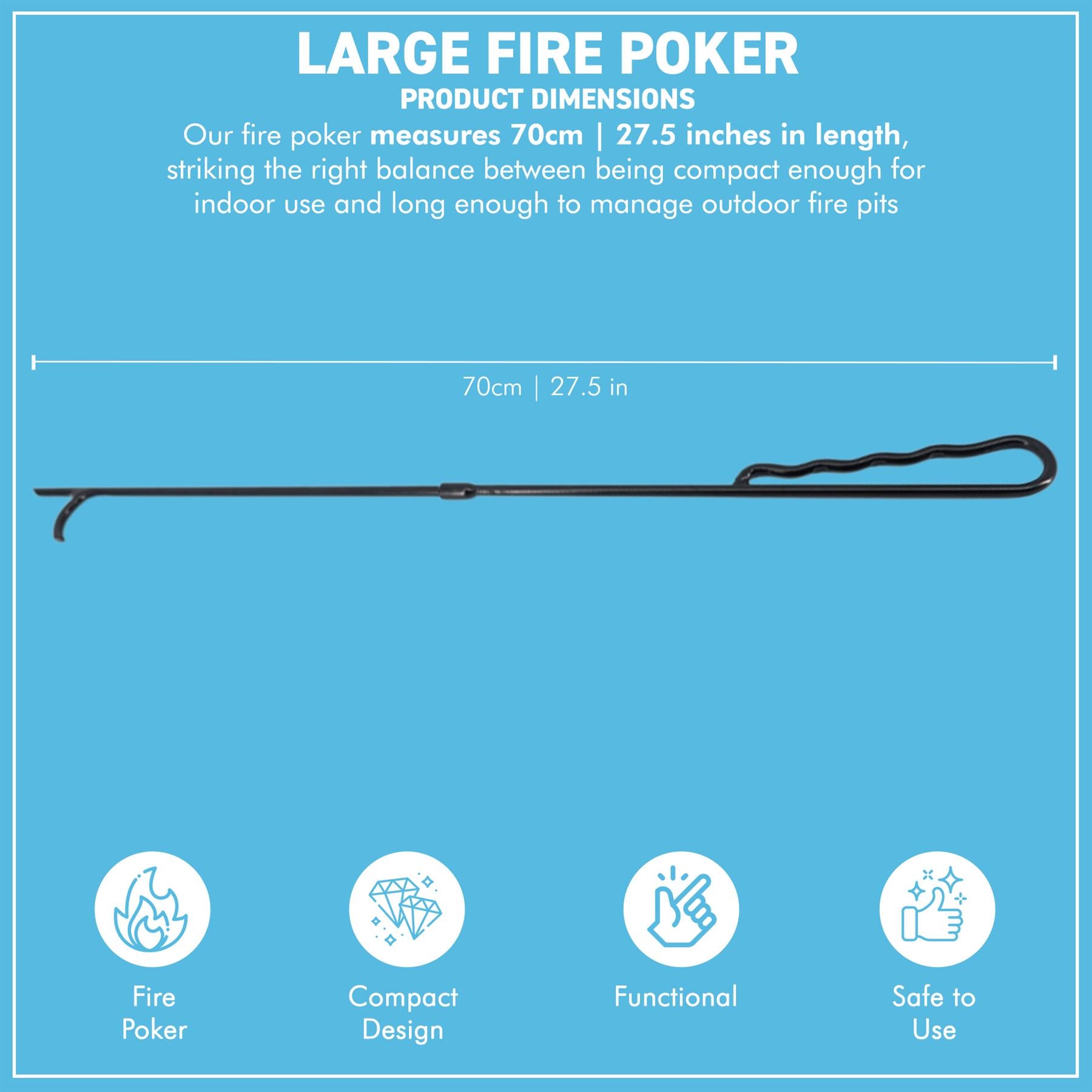 ๐——๐—œ๐— ๐—˜๐—ก๐—ฆ๐—œ๐—ข๐—ก๐—ฆ & ๐—ฉ๐—˜๐—ฅ๐—ฆ๐—”๐—ง๐—œ๐—Ÿ๐—˜ ๐—จ๐—ฆ๐—˜ : ๐— ๐—˜๐—”๐—ฆ๐—จ๐—ฅ๐—˜๐—ฆ ๐Ÿฎ๐Ÿณ.๐Ÿฑ" (๐Ÿณ๐Ÿฎ ๐—–๐— ) ๐—œ๐—ก ๐—Ÿ๐—˜๐—ก๐—š๐—ง๐—› for extended reach and safe handling. A practical and reliable fireside tool for fireplaces, wood burners, fire pits, BBQ smokers, and campfires.