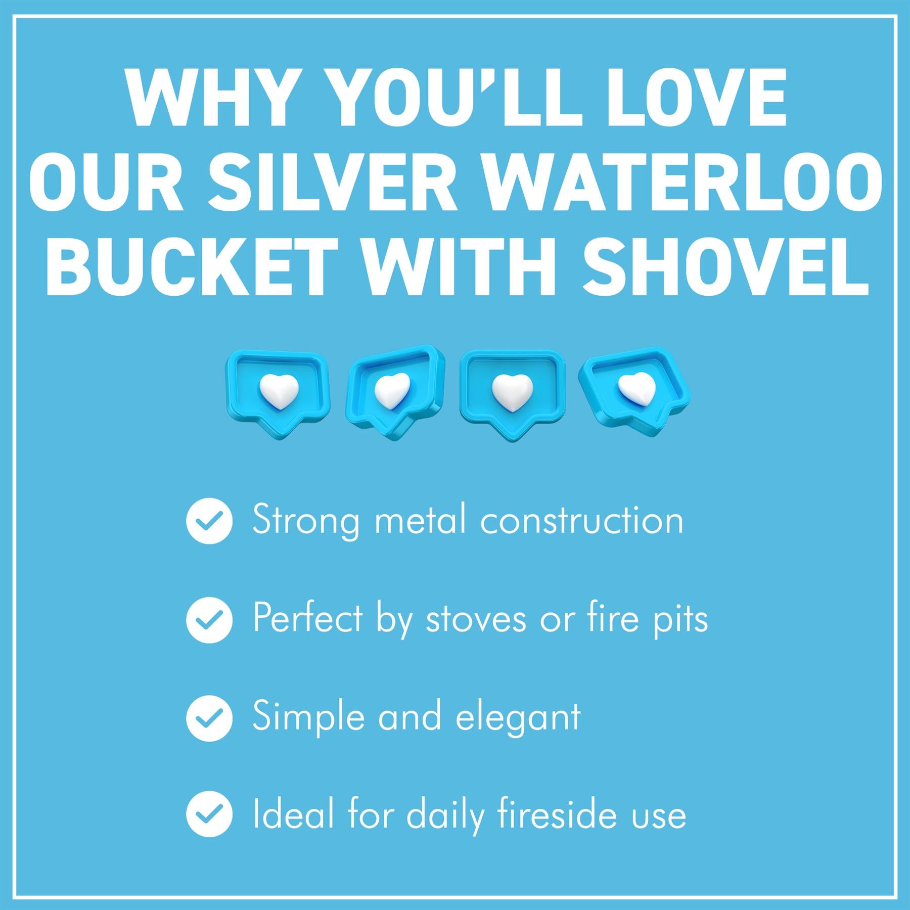 𝗖𝗟𝗔𝗦𝗦𝗜𝗖 𝗪𝗔𝗧𝗘𝗥𝗟𝗢𝗢 𝗗𝗘𝗦𝗜𝗚𝗡 : Bring timeless style to your fireplace with the Waterloo Silver Finish Coal & Ash Bucket. The elegant silver finish adds a modern yet traditional look, enhancing any hearth, log burner, or stove setup.