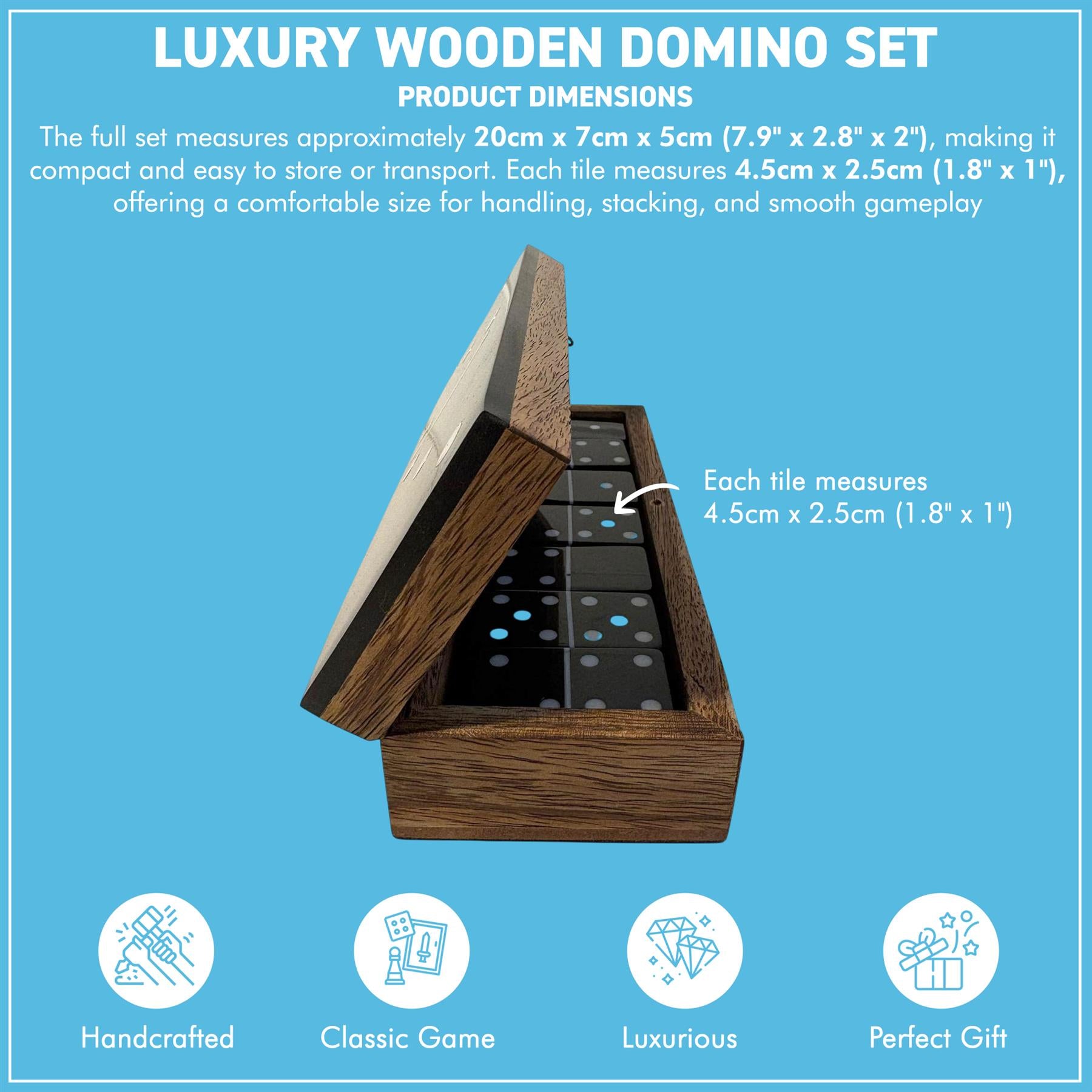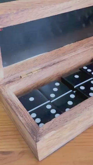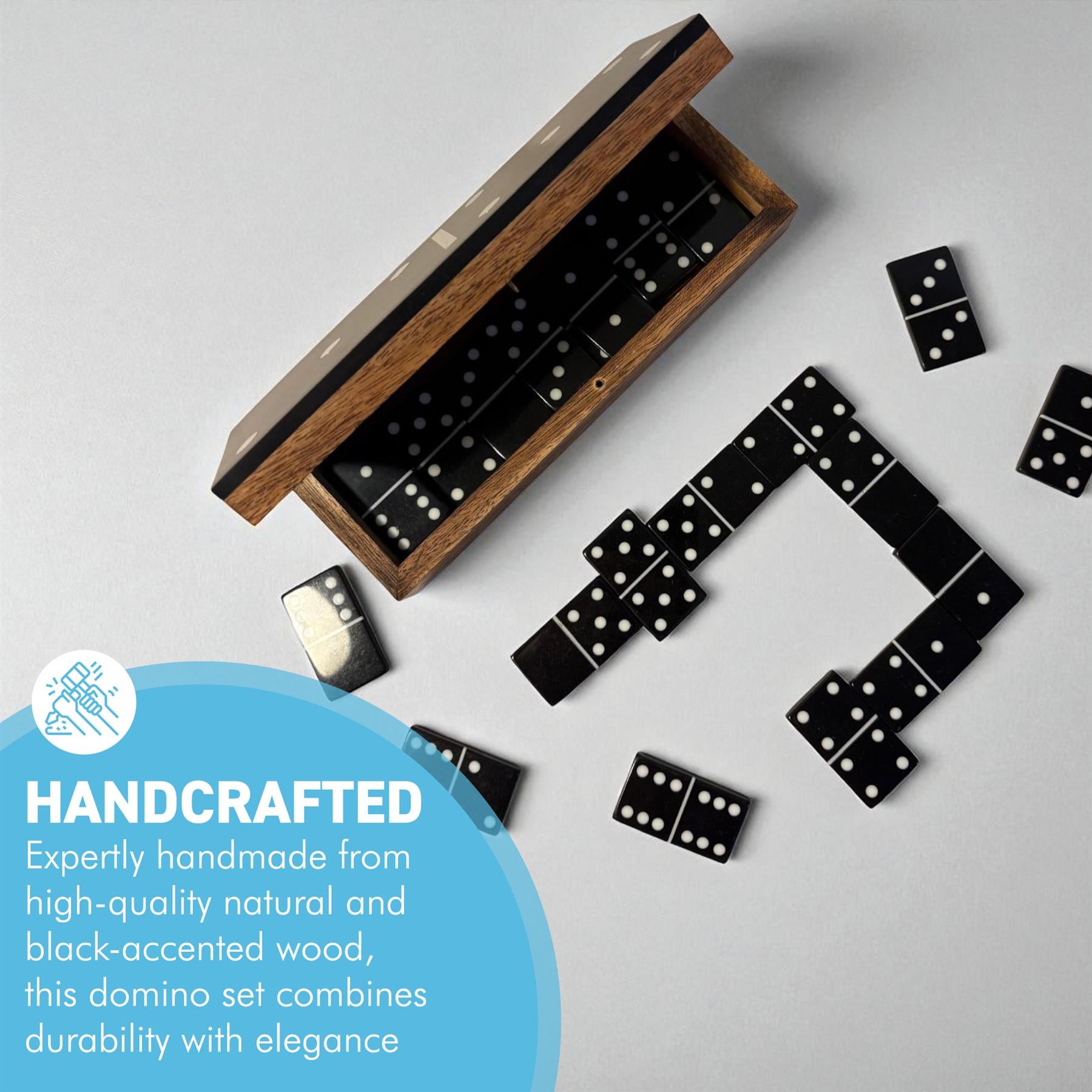 𝗛𝗔𝗡𝗗𝗖𝗥𝗔𝗙𝗧𝗘𝗗 𝗪𝗢𝗢𝗗𝗘𝗡 𝗗𝗢𝗠𝗜𝗡𝗢 𝗦𝗘𝗧 – Expertly handmade from high-quality natural and black-accented wood, this domino set combines durability with elegance. Perfect for game nights, tabletop display, or as a collectible piece for your home or office.