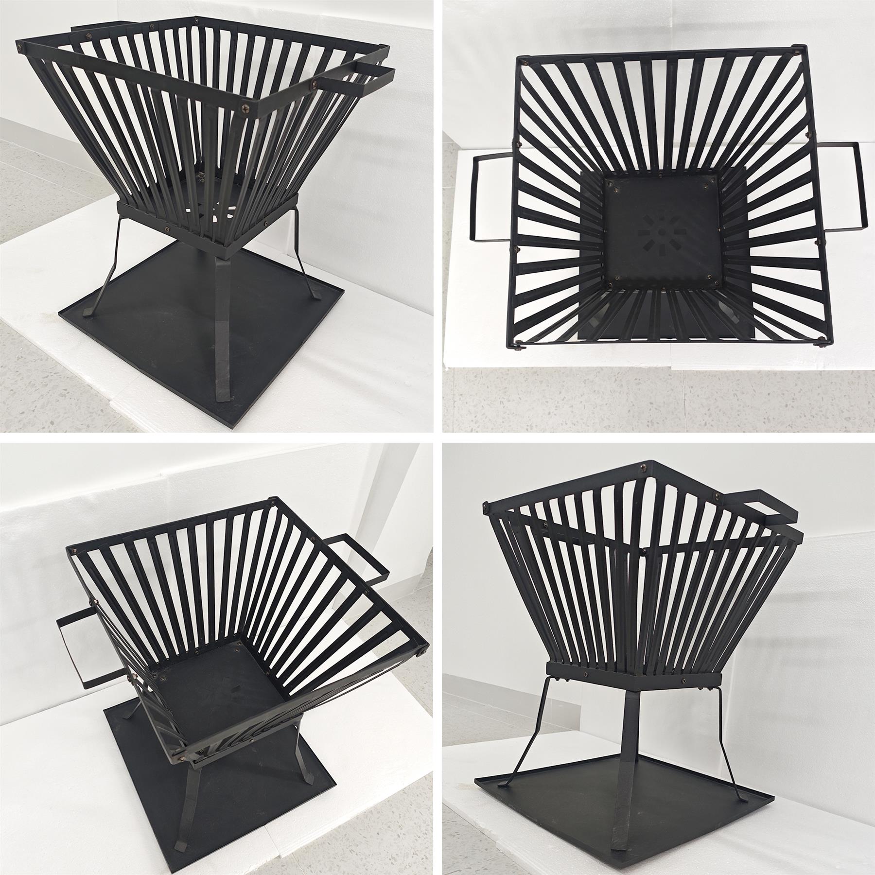 𝗦𝗜𝗠𝗣𝗟𝗘 𝗔𝗦𝗦𝗘𝗠𝗕𝗟𝗬 & 𝗦𝗧𝗔𝗕𝗟𝗘 𝗙𝗥𝗔𝗠𝗘: Designed for quick setup, this steel fire basket assembles easily into a secure, steady structure. Once built, it stays firmly in place, holding logs safely for consistent burning. The sturdy frame provides dependable performance for outdoor heating, fire pits, and garden relaxation. It’s durable and heat-resistant.