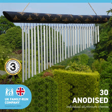 This 30-NOTE CHIME has a charming calm tinkle sound, it can be hung in the garden as a windchime or used as an instrument, the bamboo windchime has 30 ANODISED INDIVIDUAL ALUMINIUM CHIMES which produce a gentle musical tinkling sound when gently blown in the wind, the notes resonate wonderfully
