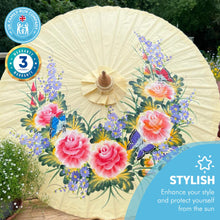 Enhance your style and protect yourself from the sun with this enchanting floral parasol, a true blend of art and practicality.