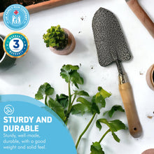 A GARDEN TROWEL is a basic piece of gardening equipment that every gardener needs, and this hand trowel combines the DURABILITY of a metal trowel with the comfort and elegance of a WOODEN HANDLE