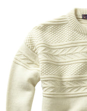 Crafted from 100% BRITISH WOOL and featuring traditional textured patterns, the Guernsey sweater continues to be highly sought after today. With its PRACTICAL DESIGN, including the same patterns on the front and back, side vents for ease of movement, and a smart crew neck, this sweater embodies both style and functionality. While it requires gentle handwashing to maintain its quality, its enduring appeal makes it a CHERISHED GARMENT for years to come.