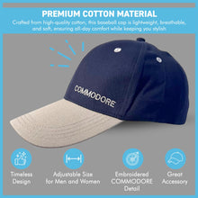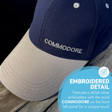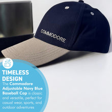 𝗖𝗟𝗔𝗦𝗦𝗜𝗖 𝗡𝗔𝗩𝗬 𝗕𝗟𝗨𝗘 𝗗𝗘𝗦𝗜𝗚𝗡, The Commodore adjustable baseball cap features a timeless navy blue color that complements any outfit, making it perfect for casual wear, sports, and outdoor activities.