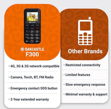 ๐ฒ๐ฐ๐ ๐, ๐ฑ ๐๐๐ฌ ๐๐๐ง๐ง๐๐ฅ๐ฌ ๐๐๐๐: With the Oakcastle F300โs 5-day battery life and 64MB storage, you can feel certain that this basic phone will always be ready and available when you need it. This mobile phone doesnโt require frequent recharging and has ample space for contacts, messages, and media files: perfect for sending and receiving videos, photos, and texts from loved ones.
