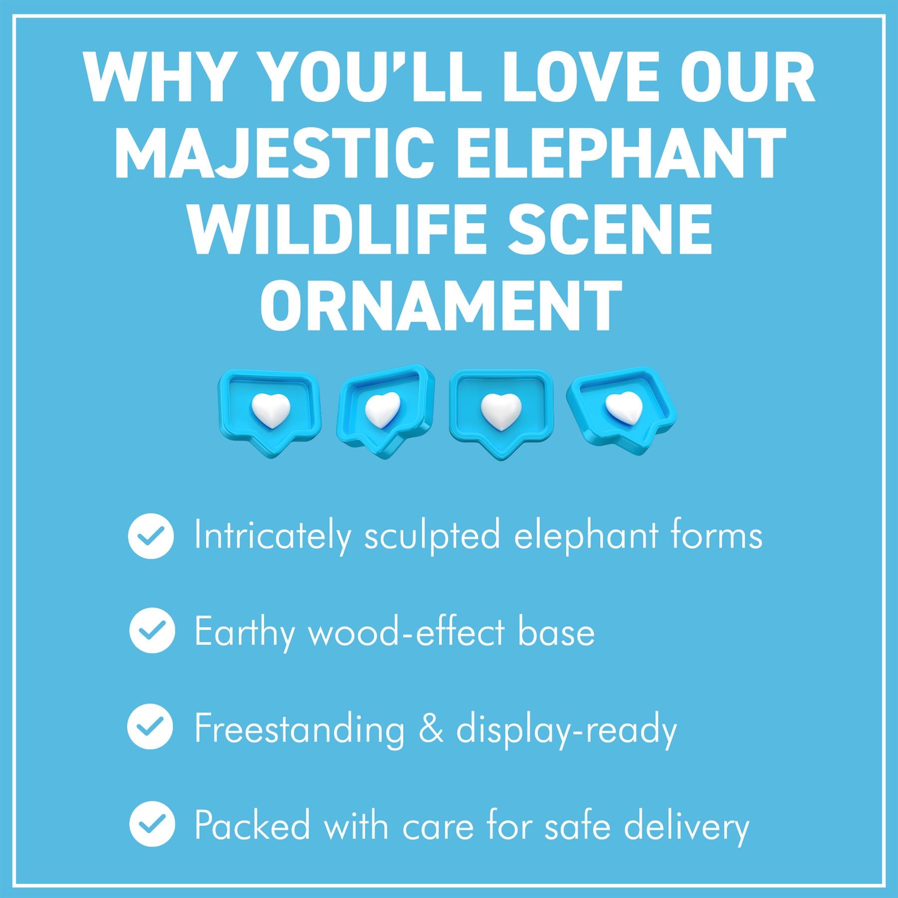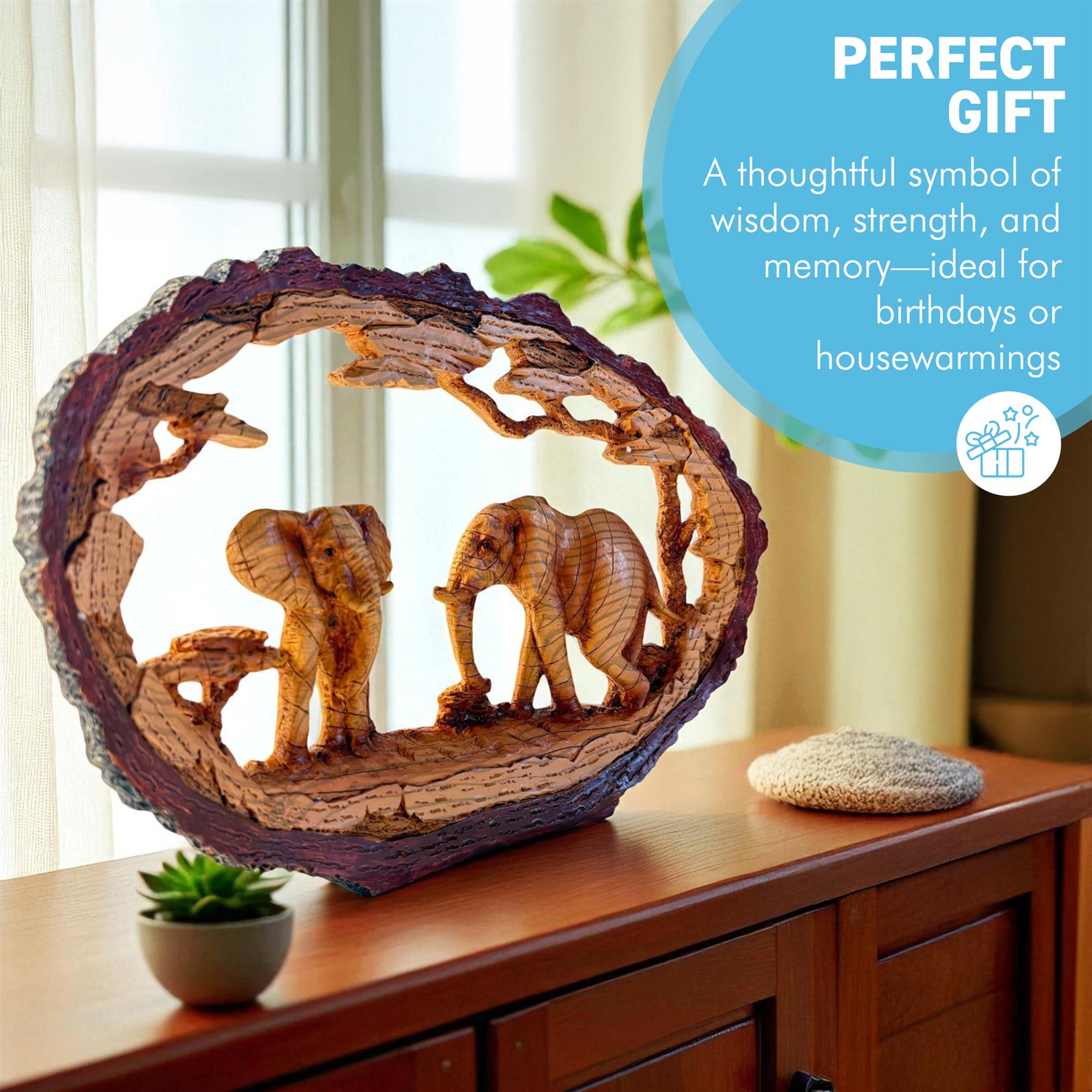 𝗕𝗥𝗜𝗡𝗚 𝗡𝗔𝗧𝗨𝗥𝗘’𝗦 𝗕𝗘𝗔𝗨𝗧𝗬 𝗜𝗡𝗗𝗢𝗢𝗥𝗦: Let these magnificent elephants bring the spirit of the wild into your living space. With a lifelike design, rustic base, and natural textures, this decorative elephant figurine adds character, charm, and a touch of wilderness to your home or office. Perfect for wildlife lovers, collectors, or anyone seeking a unique home centrepiece.