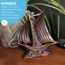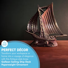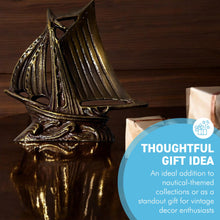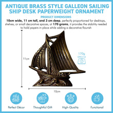 𝗧𝗜𝗠𝗘𝗟𝗘𝗦𝗦 𝗘𝗟𝗘𝗚𝗔𝗡𝗖𝗘: Crafted from durable brass with a distressed gold patina, this 10cm x 11cm x 3cm ship paperweight blends functionality with intricate sailing ship artistry, ideal for desktops and nautical-themed home decor.