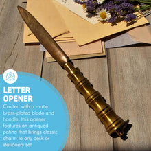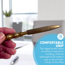 𝗩𝗜𝗡𝗧𝗔𝗚𝗘 𝗕𝗥𝗔𝗦𝗦 𝗟𝗘𝗧𝗧𝗘𝗥 𝗢𝗣𝗘𝗡𝗘𝗥: features a distressed brass plated blade and short, ridged handle perfect for opening letters, envelopes, books, and parcels. Ideal for home and office use.