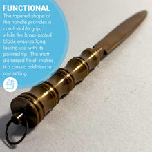 𝗖𝗢𝗠𝗣𝗔𝗖𝗧 𝗔𝗡𝗗 𝗙𝗨𝗡𝗖𝗧𝗜𝗢𝗡𝗔𝗟: The tapered shape of the handle provides a comfortable grip, while the brass-plated blade ensures long lasting use with its pointed tip. The matt distressed finish makes it a classic addition to any setting.