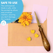 MEASURES 20 CM (8 INCHES) IN LENGTH, with a 10 cm wooden handle. The blade is safe to handle, with a pointed tip for easy envelope insertion.