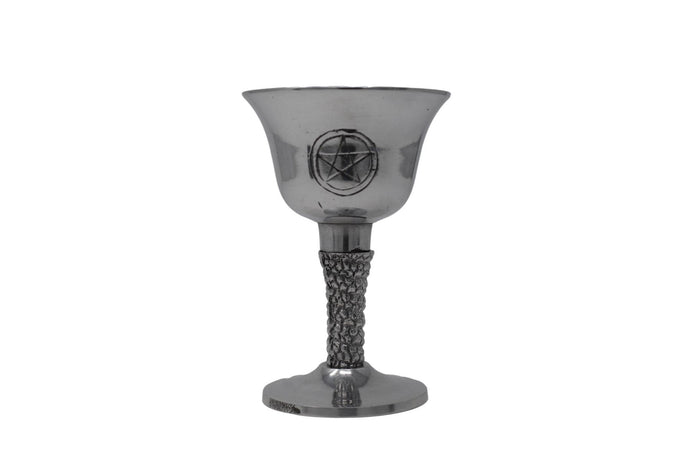 Silver coloured gothic goblet chalice with magic pentagram symbol perfect for use as a home altar piece / wiccan / wicca / meditation / gothic