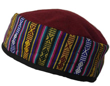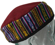 These smoking caps are handmade in Nepal using traditional Tibetan material and wool, please note that as they are all individually made the pattern on the sides will vary