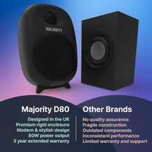 80 WATTS, HD SOUND, 5-INCH DRIVERS: The D80 speakers pack a punch with 80 watts of total power output, ensuring robust sound performance for movies, music, and even gaming. Creates a balanced and immersive audio landscape, engineered to support HD audio.