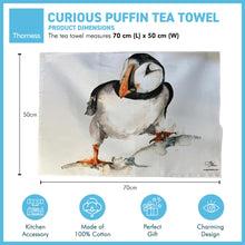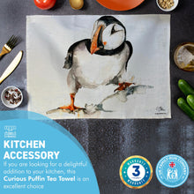 This tea towel showcases these delightful creatures, featuring a charming and detailed curious puffin design that brings a touch of COASTAL BEAUTY to your kitchen. This Tea Towel is not only visually appealing but also HIGHLY FUNCTIONAL. Whether you're looking for a housewarming gift or a present for a bird lover, this tea towel is sure to bring a smile to their face.
