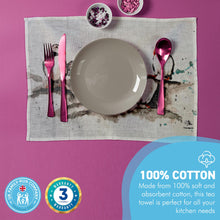 Made from 100% soft and absorbent cotton, this tea towel is perfect for all your kitchen needs. Tea towels are a KITCHEN ESSENTIAL, serving a multitude of purposes from drying dishes to covering freshly baked goods.