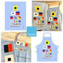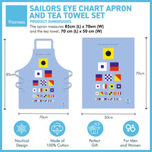 The apron stands out with its distinctive nautical-inspired design. The eye catching blue colour, reminiscent of the sea, creates a captivating backdrop for the Sailors Eye Chart motif, The apron measures 85cm (L) x 70xm (W), 33.5 inches (L) x 27.5 inches (W) Crafted from 100% cotton, this apron is highly absorbent and durable.