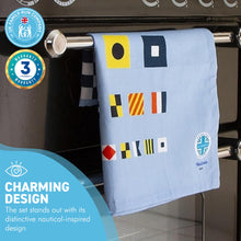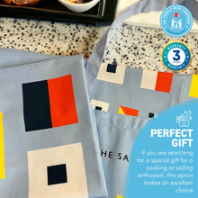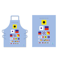 This set includes an apron with a matching tea towel, designed for cooking enthusiasts who appreciate a touch of nautical charm in their kitchen.