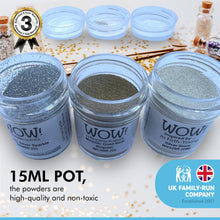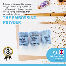Free your CREATIVITY and give your embossing SPARKLE with this set of 3 x 15ml pots | the set includes Silver Sparkle, Silver Snow and Metallic Gold Rich