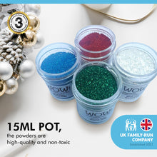 Free your CREATIVITY and give your embossing SPARKLE with this set of 4 x 15ml pots of Glitzy embossing glitter, the set includes Green, Blue, Red and White Glitz.