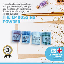 When it comes to embossing powder, the options are nearly limitless. Whether you want a super shiny effect, matte, antique, distressed, metallic... etc., you will find a powder for it. Think of embossing like pottery, first, you make the pot, then you add the glaze. In card making first we stamp the image, then we add our glaze - the embossing powder.